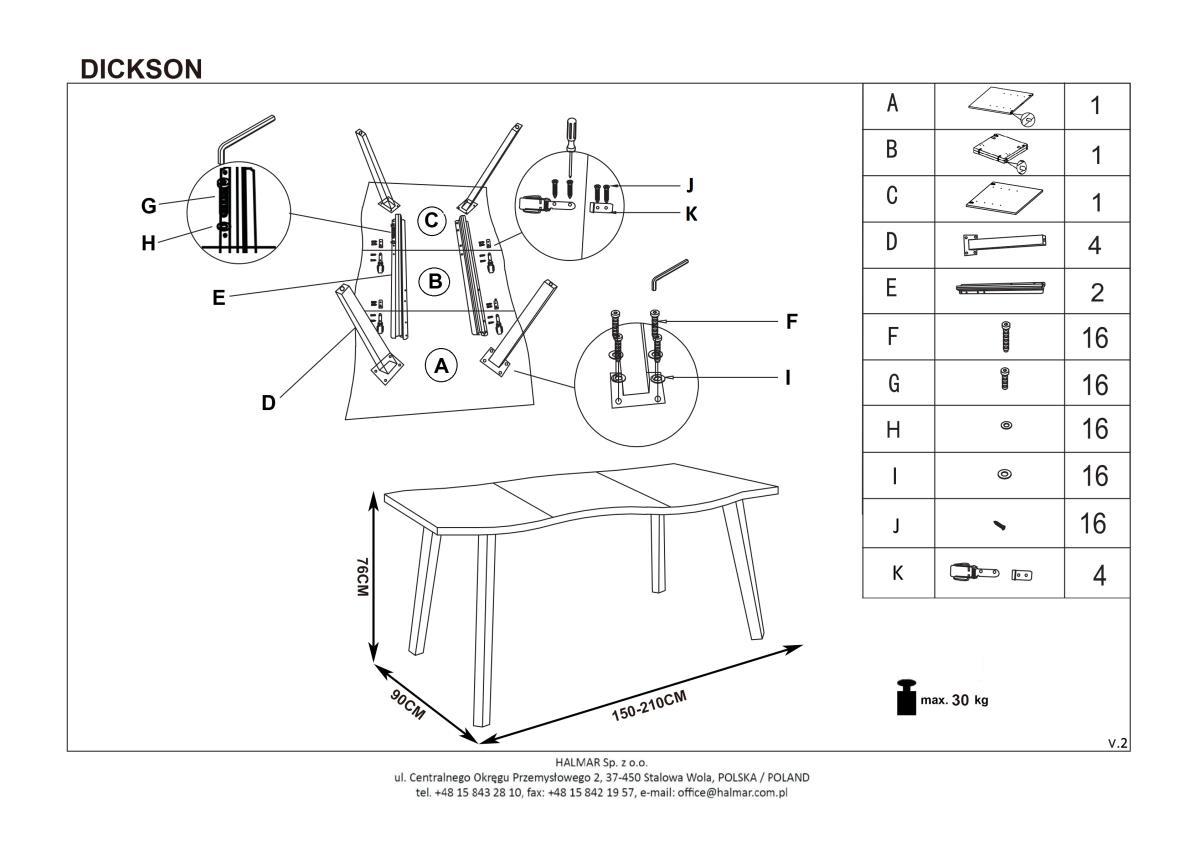 Стол Halmar Стол обеденный Halmar DICKSON раскладной (дуб натуральный/черный) арт. V-CH-DICKSON-ST-150/210