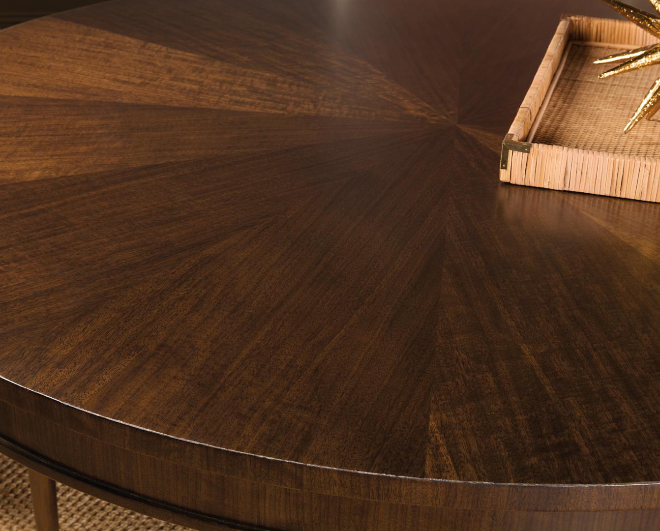 Чудесный круглый обеденный стол, выполненный в традиционном стиле. Стол изготовлен из орехового шпона, верхняя часть выполнена из массива дерева. Такой стол несомненно придется по вкусу всем, кто ищет стильные и элегантные варианты для своего дома. Отлично будет смотреться практически в любом интерьере столовой.