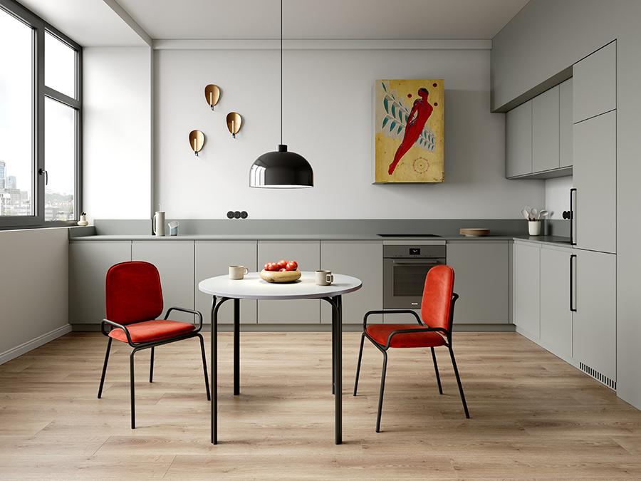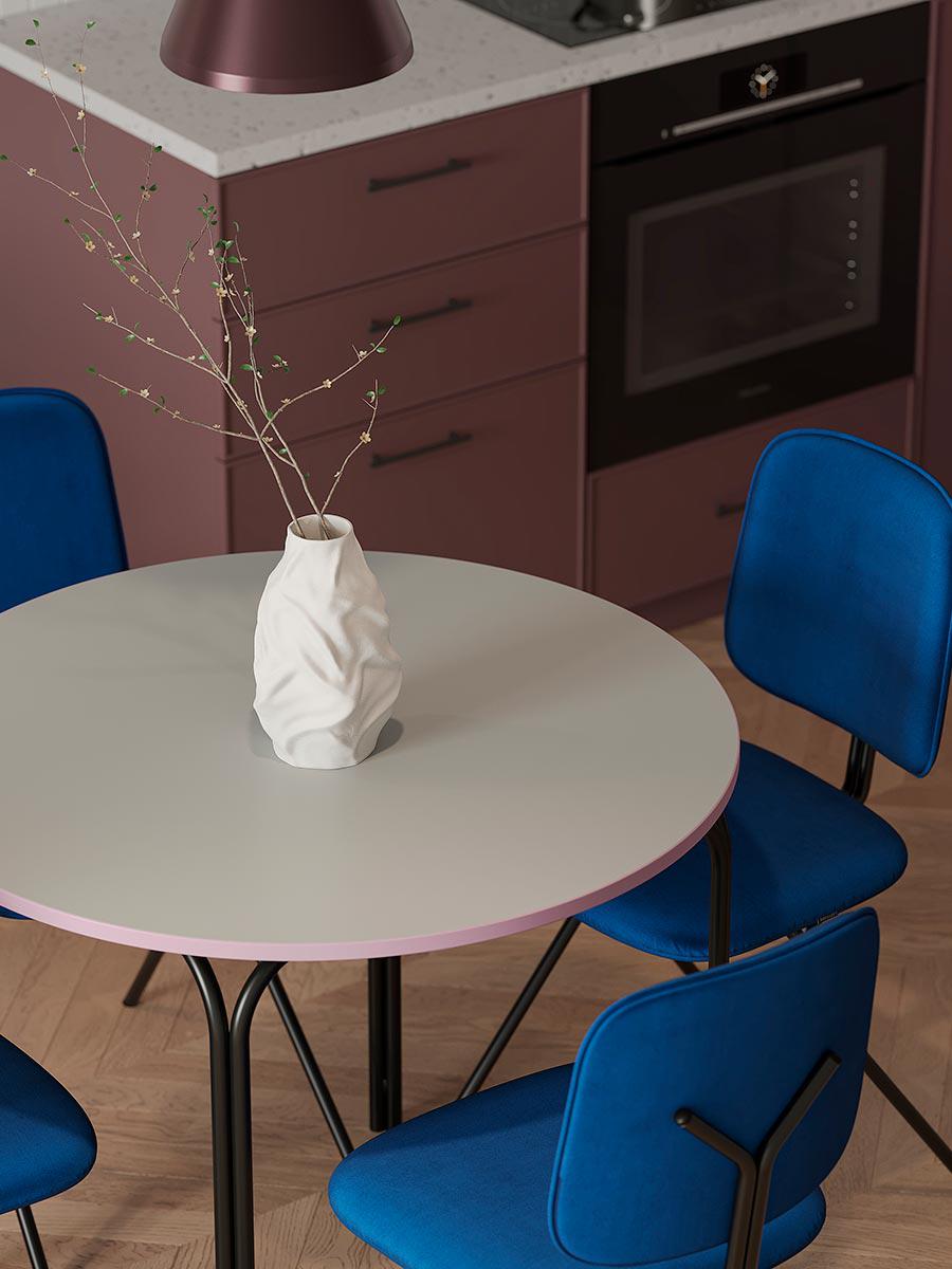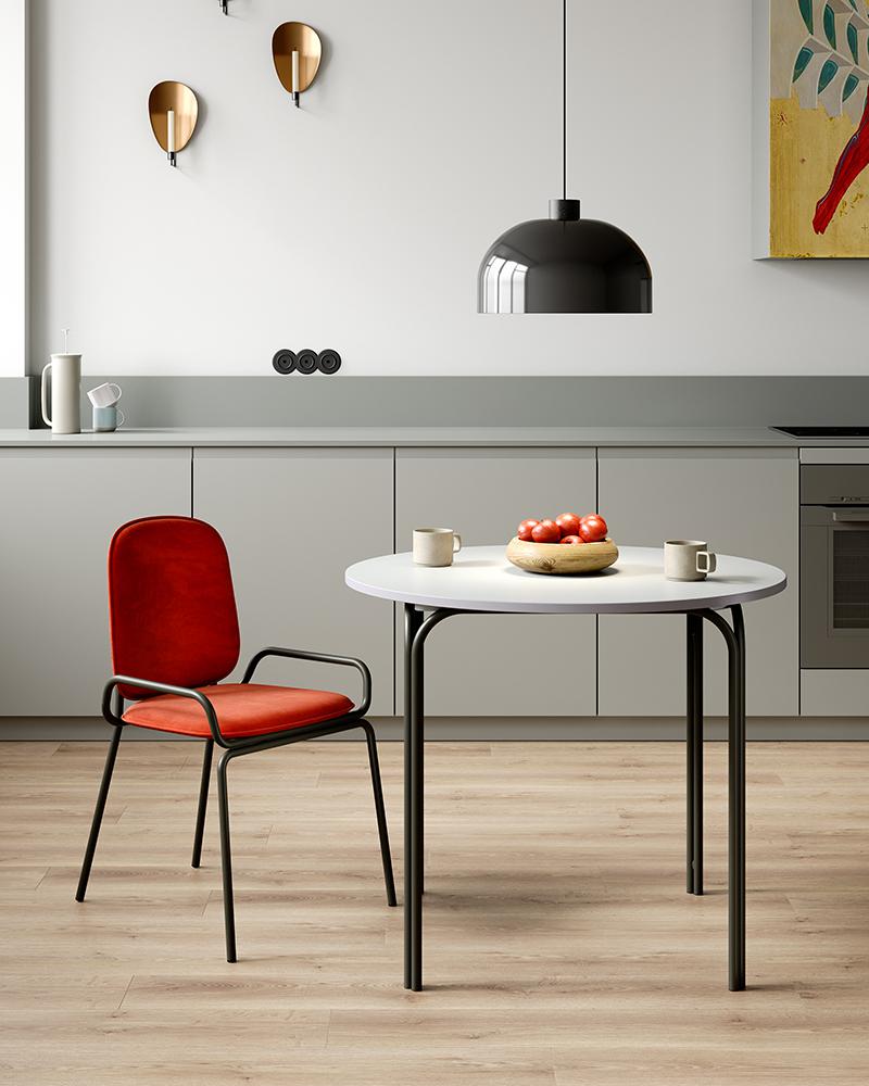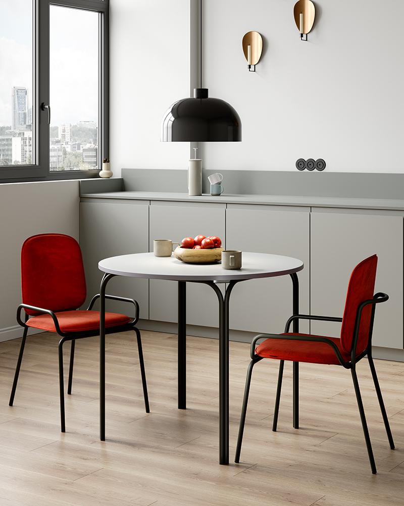 Коллекция Ror – это мебель с индивидуальным характером. Отправной точкой создания линейки стало динамичное движение, воплощенное в логотипе Олимпиады 80, где беговые дорожки образуют силуэт Спасской башни. Стол обеденный имеет прочный стальной каркас с порошковым покрытием, что делает его надежным и долговечным. Столешница из ламинированной МДФ отличается повышенной устойчивостью к царапинам, легко моется и не впитывает грязь. Прекрасные эксплуатационные характеристики позволяют использовать мебель не только в домашних условиях, но и для обустройства коммерческих пространств. Все материалы отвечают высоким стандартам практичности и экологической безопасности. Модель с круглой столешницей дает возможность экономить полезную площадь и при необходимости разместить большее количество стульев. Стол с простым, но в то же время элегантным дизайном украсит интерьер кафе, ресторана, отлично подойдет для оформления обеденной зоны в доме или квартире. Материалы: сталь, ламинированная МДФ. Диаметр: 90 см. Цвет: черный/серый. Пыль и загрязнения с поверхностей можно удалять при помощи мягкого влажного материала. После очищения мебель рекомендуется протереть сухой салфеткой.