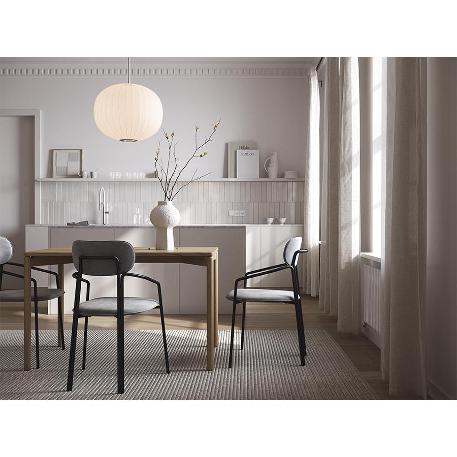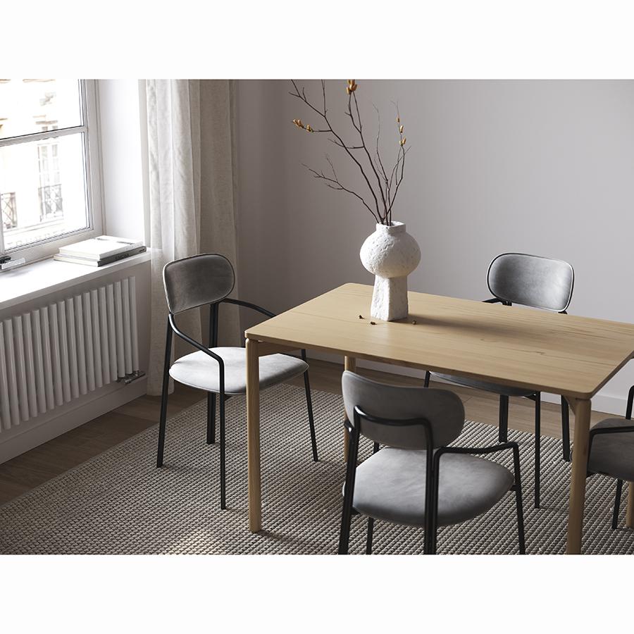 Cтол обеденный изготовлен из массива ясеня – твердой породы древесины, плотность и прочность которой не уступает характеристикам дуба. Благодаря прекрасным эксплуатационным свойствам материала готовое изделие устойчиво к износу, деформации, ударам, имеет высокие показатели практичности и экологической безопасности. Покрытая натуральным шпоном столешница не боится царапин и долго сохраняет привлекательный вид. Мебель из массива дерева с лаконичным дизайном всегда актуальна, отлично сочетается с любыми материалами и стилевыми решениями, что является ее неоспоримым преимуществом. Стол подходит для обустройства домашних и коммерческих интерьеров. Коллекция Saga разработана российским дизайнером и основателем студии Latitude Николаем Никитиным. Мебель в скандинавском стиле безупречного европейского качества идеально подходит для создания стильных и комфортных интерьеров с уютной атмосферой. Материалы: массив ясеня, шпон ясеня. Размеры: 75х120 см. Цвет: ясень. Пыль и загрязнения с поверхностей можно удалять при помощи мягкого влажного материала. После очищения мебель рекомендуется протереть сухой салфеткой.
