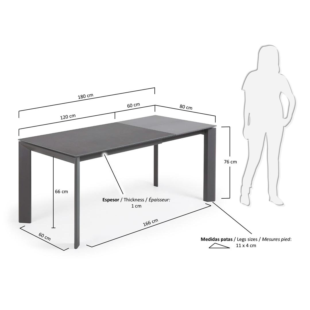 Стол La Forma (ех Julia Grup) Стол раскладной Atta 120(180) x80 антрацит, керамика Vulcano Roca арт. 052173