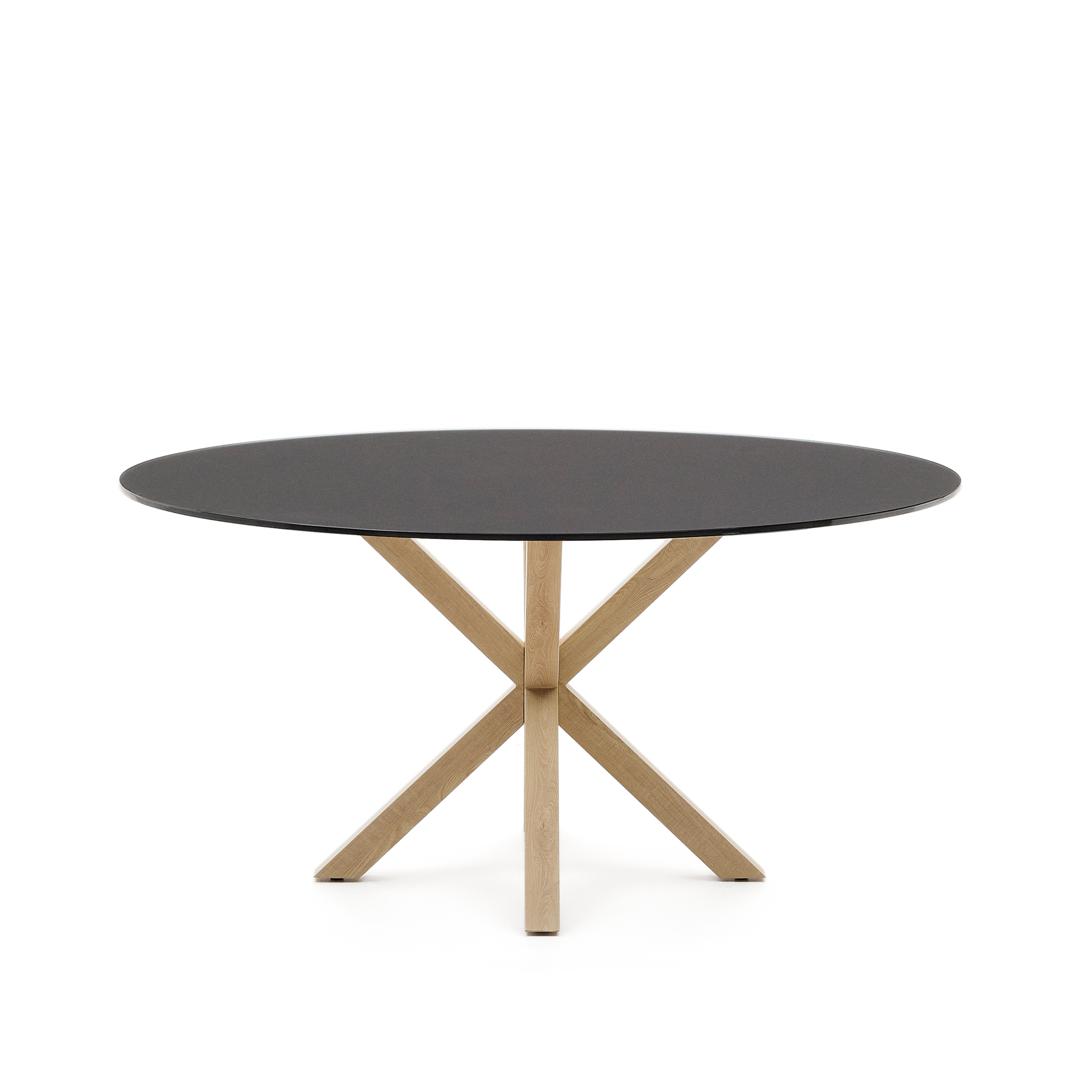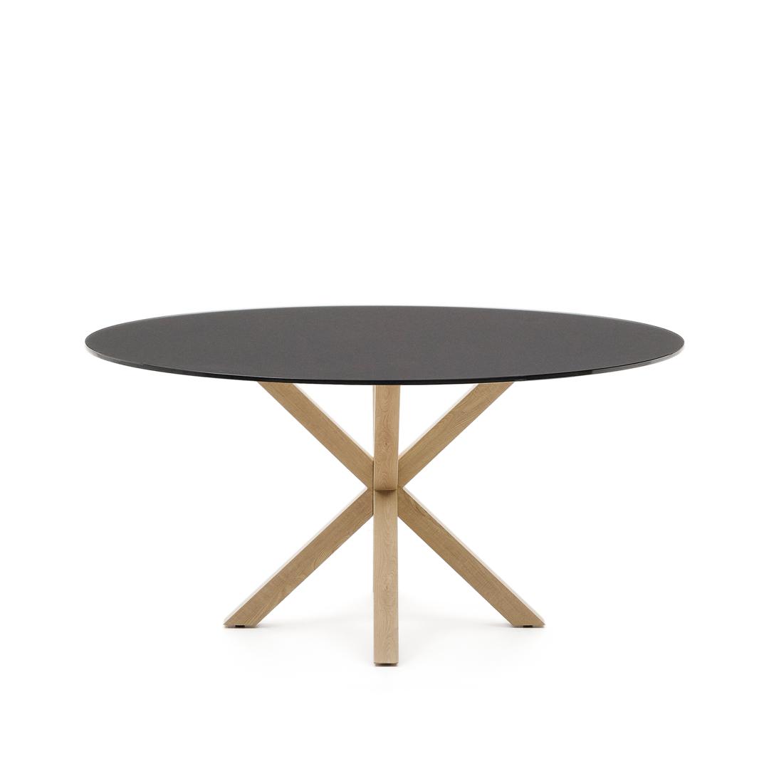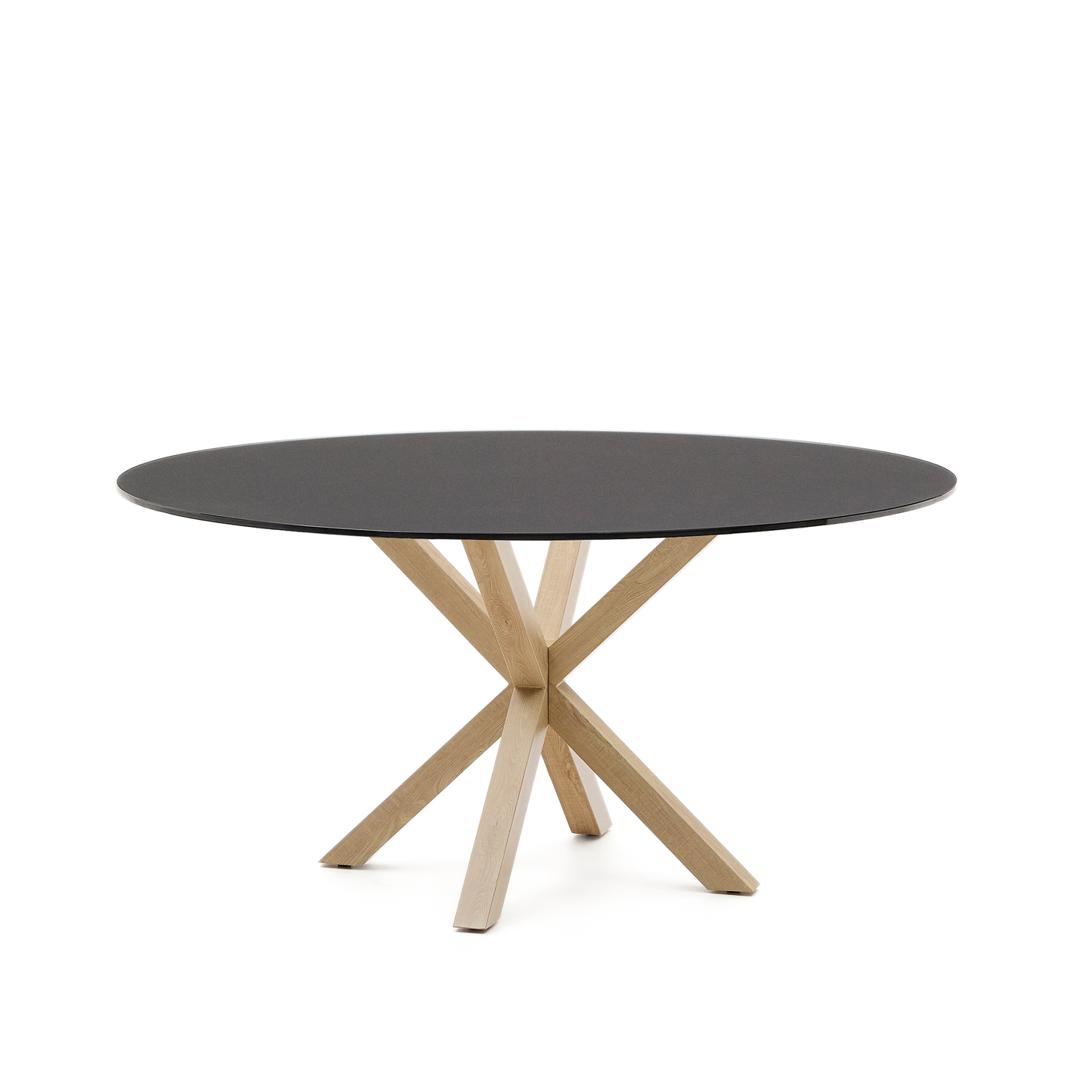 Стол La Forma (ех Julia Grup) Круглый стол Argo из матового черного стекла со стальными ножками под дерево, Ø 150 арт. 196818