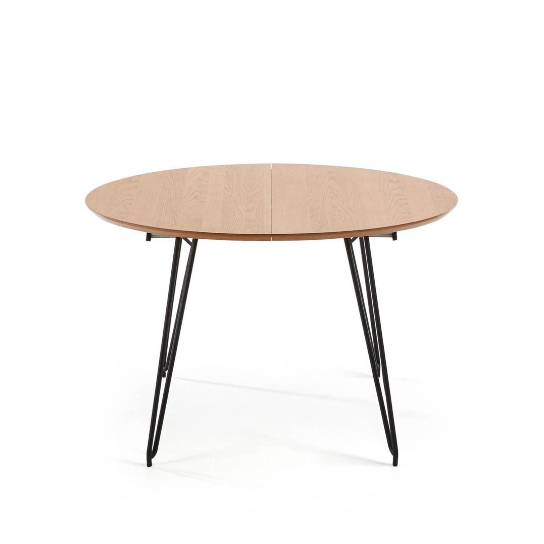 Стол Novaks 120 (200) х120 от фабрики La Forma – утонченная конструкция со встроенным раздвижным механизмом. Стол Novaks с первого взгляда убеждает в своей практичности и продуманном исполнении. Несмотря на внушительные габариты в разложенном виде, изящная металлическая опора существенно визуально облегчает модель. А это значит, что стол будет смотреться в помещении легко и непринужденно, хорошо гармонировать с современной мебелью. Стол имеет форму вытянутого овала. Столешница сделана из шпона дуба и покрыта лаком для защиты от негативного воздействия влаги и загрязнений. Ее толщина составляет 2,5 см, что обеспечивает стойкость к высоким ветровым нагрузкам. Опора из металла покрыта черной эпоксидной краской. Она имеет сварную трубчатую конструкцию и поддерживает стол по всему периметру. Ножки двойные, для надежности поперечно соединены перекладинами. Раскладной механизм выполнен из прочной стали, что гарантирует прочность и долговечную эксплуатацию. Чтобы раздвинуть стол, необходимо потянуть за края столешницы с каждой стороны и достать из центра две деревянные панели. Размеры изделия: длина – 120-200 см, ширина – 120 см, высота – 75 см. Вес изделия составляет 48,5 кг. Потребуется самостоятельная сборка. Для нее в комплектацию включена инструкция и необходимый крепеж. Во избежание повреждения поверхности столешницы рекомендуется использовать скатерти или салфетки.