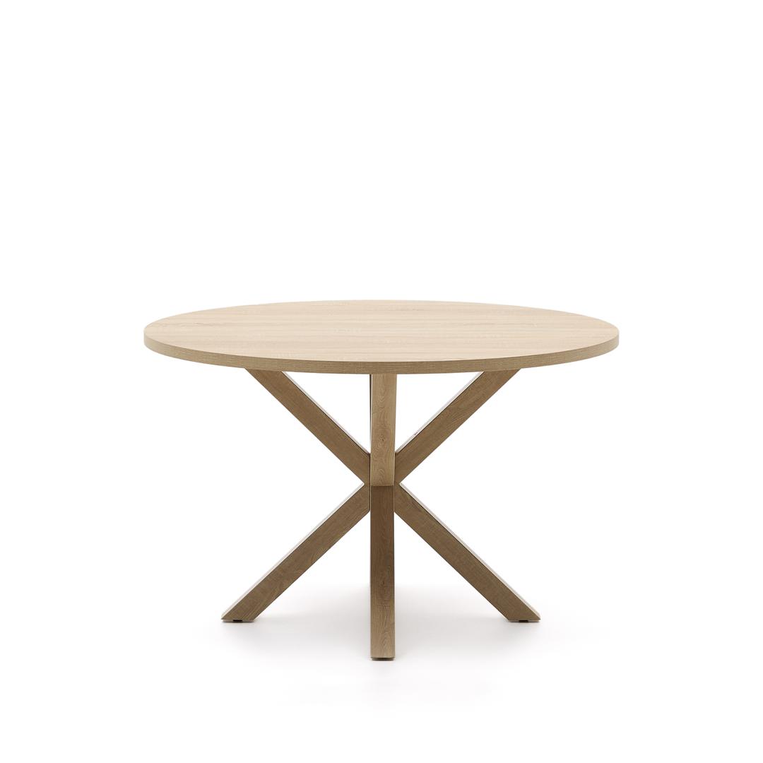 Стол Arya от фабрики La Forma (ex Julia Grup) – оригинальная конструкция и металл с эффектом дерева. Стол Arya легко и лаконично впишется в любой городской интерьер, ведь его буковый цвет – тренд европейского минимализма. Прочность здесь гарантируют металлические ножки, которые замаскированы под деревянные. Круглая и просторная столешница позволит разместить больше людей и не задумываться об острых углах и неудобстве. Стол сделан из дерева и металла. Прочная столешница из древесностружечной плиты покрыта шпоном букового дерева и меламином, который защищает от влаги, загрязнений. Толщина столешницы 3 см. Опора имеет симметричную форму, создана из четырех скрещенных между собой металлических ножек толщиной 6 на 6 см. Сверху – покрытие под буковую древесину с защитой от внешних повреждений. Для устойчивости на каждой ножке предусмотрены пластиковые накладки. Ширина шага между ножками – 72 см. Максимально допустимая нагрузка на стол не должна превышать 60 кг. Вместимость – 6 человек. Размеры: ширина столешницы – 120 см, ширина опоры – 81 см, высота – 74,5 см. Вес – 26,9 кг. Потребуется небольшая сборка. Инструкция и крепеж входят в комплектацию. В коллекцию Arya включены аналогичные круглые и прямоугольные стеклянные столы с ножками из разных материалов. Конструкция опоры у всех моделей одинаковая.