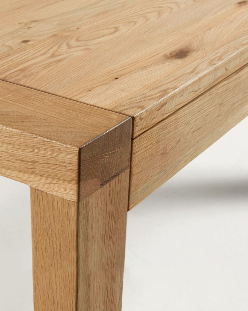 Обеденный стол Vivy 200(280)x100 от фабрики La Forma – когда красота и ценность натурального дерева присутствуют в каждой детали. Обеденный стол Vivy – это настоящая находка для поклонников скандинавского или эко-стиля. Кажется, что начинаешь чувствовать аромат и теплоту дерева, как только касаешься этой модели своим взглядом. Но помимо своей натуральности, изделие обладает еще одним плюсом. Благодаря встроенному раздвижному механизму, стол можно удлинить почти на метр. А это практично и удобно! Стол прямоугольной формы, полностью сделан из дерева. Поверхность столешницы покрыта лаком для защиты от влаги и загрязнений. Ее цвет зависит от выбранной модели (натуральный светлый или темный дуб, состаренный дуб). Ножки имеют прямоугольную форму, сделаны в виде брусков с шириной грани 10 см и глубиной 5 см. Они равномерно распределяют нагрузку, надежные при высоких весовых нагрузках. Изделие оснащено раскладным механизмом типа «бабочка». Чтобы разложить стол, необходимо раздвинуть в противоположные стороны края столешницы и извлечь сложенную вдвое дополнительную панель. Число посадочных мест при полной длине – 10. Размеры стола: длина – 180-230 см, ширина – 90 см, высота – 77 см. Изделие поставляется в разобранном виде с крепежом и инструкцией для сборки. Во избежание повреждения поверхности столешницы рекомендуется использовать скатерти или салфетки.