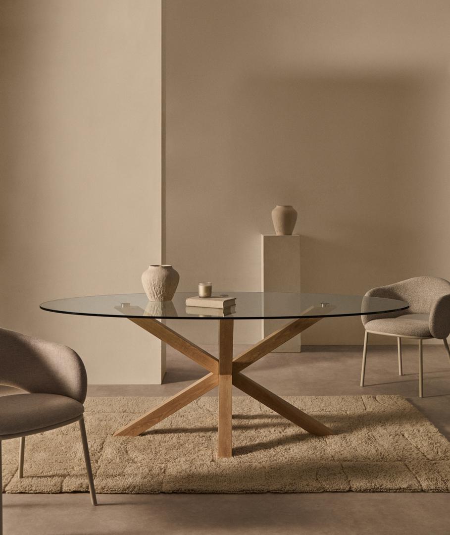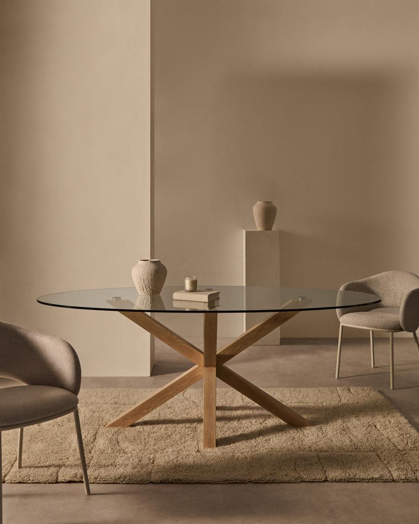 Стол La Forma (ех Julia Grup) Овальный стол ARYA Argo из прозрачного стекла и стали с эффектом дерева 200x100 арт. 196826