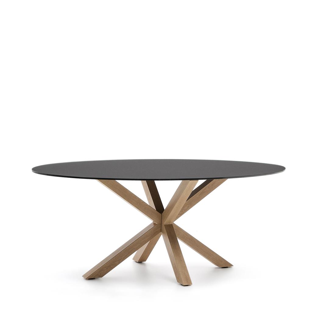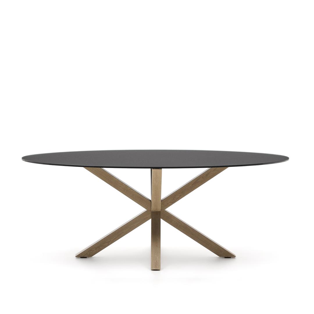 Стол La Forma (ех Julia Grup) Овальный стол ARYA Argo из матового черного стекла и стали с эффектом дерева 200x100 арт. 196824
