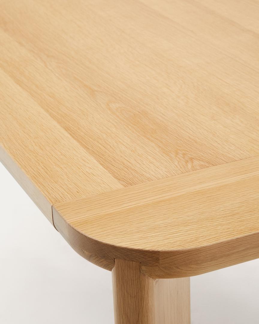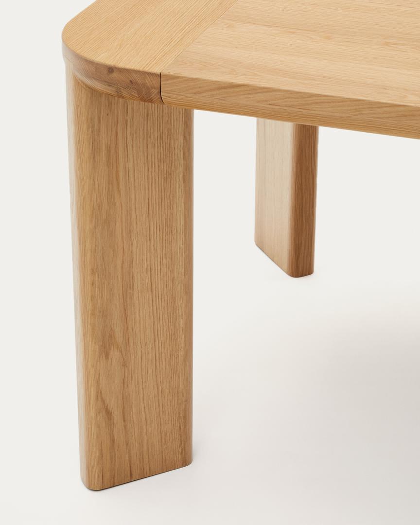 Максимально используйте пространство столовой с помощью раздвижного стола Jondal, большого предмета мебели, идеально подходящего для трапезы с гостями. Дизайн Kave Home из дуба придает элегантность и комфорт благодаря наклонным ножкам.