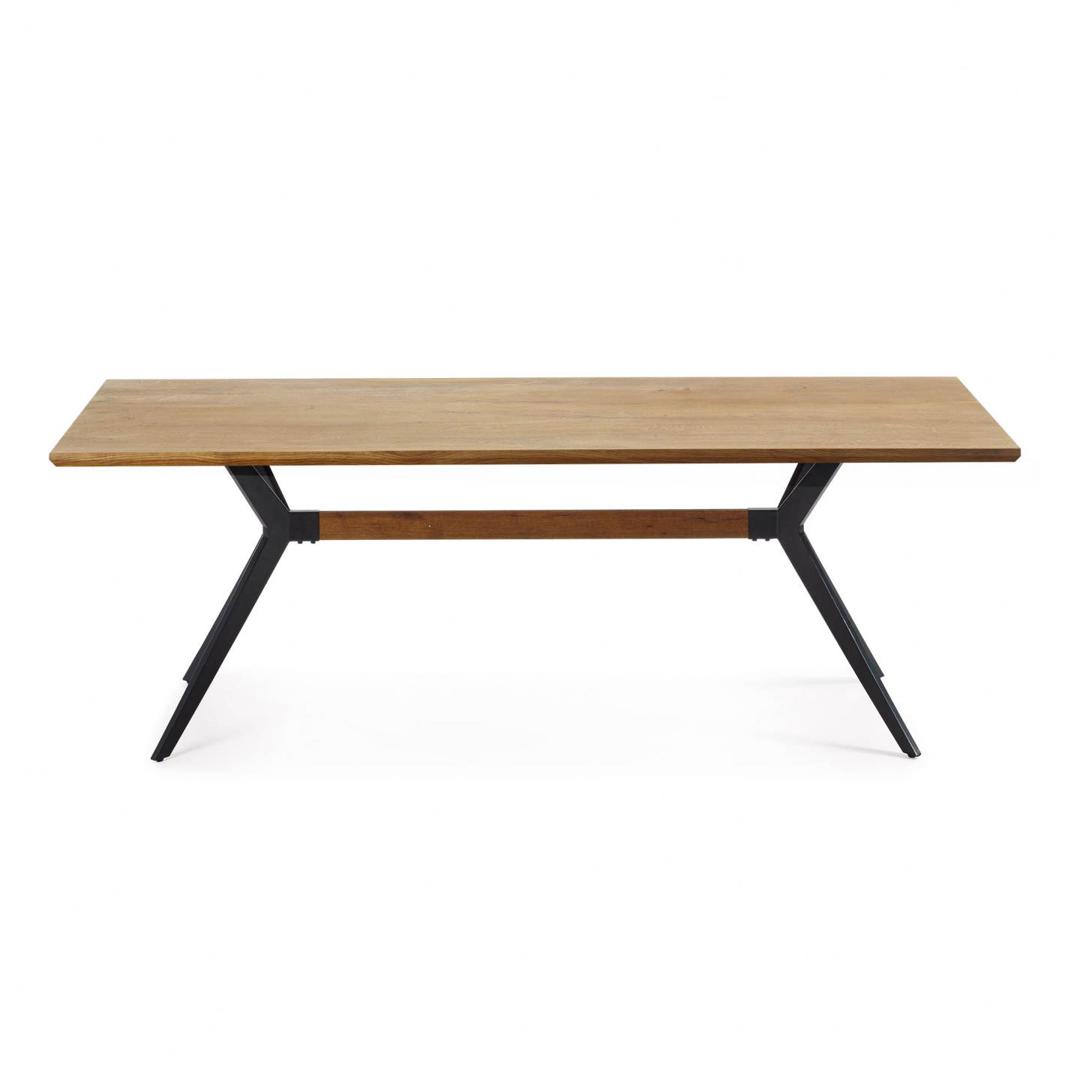 Стол Amethyst античный дуб от фабрики La Forma – стильное и современное исполнение для большой семьи. Стол Amethyst – изделие, которое точно не назовешь малогабаритным. Большое количество посадочных мест, массивная столешница из цельной древесины, стильная и прочная опора – вот главные особенности данной модели. Стол безусловно впишется в современный интерьер и по праву займет в большом помещении центральной место. Стол прямоугольный формы. Столешница цельная, не раздвижная. Материал ее изготовления – массив беленого или античного дуба с лаковым покрытием. Столешница снизу выпуклая. Ее толщина в центральной части – 3 см, с углов – 1,5 см. Опора выполнена из металла, покрыта черной эпоксидной краской для защиты от негативного воздействия внешней среды. Крестовая сварная конструкция обеспечивает равномерное распределение нагрузки (максимально допустимый вес – 20 кг) и устойчивость на любом напольном покрытии. Для надежности две пары крестовых ног соединены между собой поперечной деревянной балкой. Размеры стола: длина – 160 см, ширина – 90 см, высота – 76 см. Общая площадь рассчитана на 8 человек. Потребуется самостоятельная сборка. Крепеж и инструкция входят в комплектацию. Вес изделия в собранном виде составляет 40,9 кг. Во избежание повреждения поверхности столешницы рекомендуется использовать скатерти или салфетки.