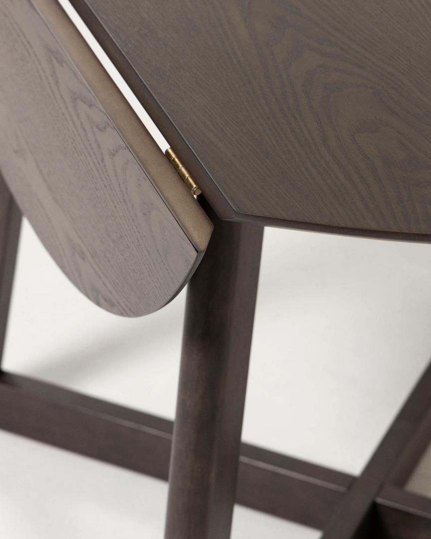 Стол круглый Maryse 120x75cm от фабрики La Forma – когда сам выбираешь конфигурацию и количество посадочных мест. Круглый стол Maryse вызывает бурю восторженных эмоций, как только узнаешь, что перед тобой настоящий трансформер. Столешнице легко можно придать другую форму, опустив один или сразу два сектора. Так можно менять не только конфигурацию и площадь изделия, но и управлять количеством посадочных мест. В полностью разложенном виде стол имеет круглую форму. Столешница выполнена из шпона ясеня. Она состоит из трех частей, снизу соединенных между собой металлическими дверными петлями. Опора сделана из массива каучукового дерева – прочной породы, способной выдерживать высокие нагрузки (максимально допустимая – 80 кг). Она состоит из двух рамочных конструкций, проходящих сквозь друг друга крест-накрест. Чтобы разложить стол, нужно поднять сектор и подпереть его снизу двумя деревянными брусками. Максимальная посадка составляет 6 человек. Размеры стола: длина – 70-120 см, ширина – 120 см, высота – 75 см. Вес – 25 кг. Опоры поставляются отдельно. Для самостоятельной сборки в комплектацию включен крепеж, инструкция. Во избежание повреждения поверхности столешницы рекомендуется использовать скатерти или салфетки.