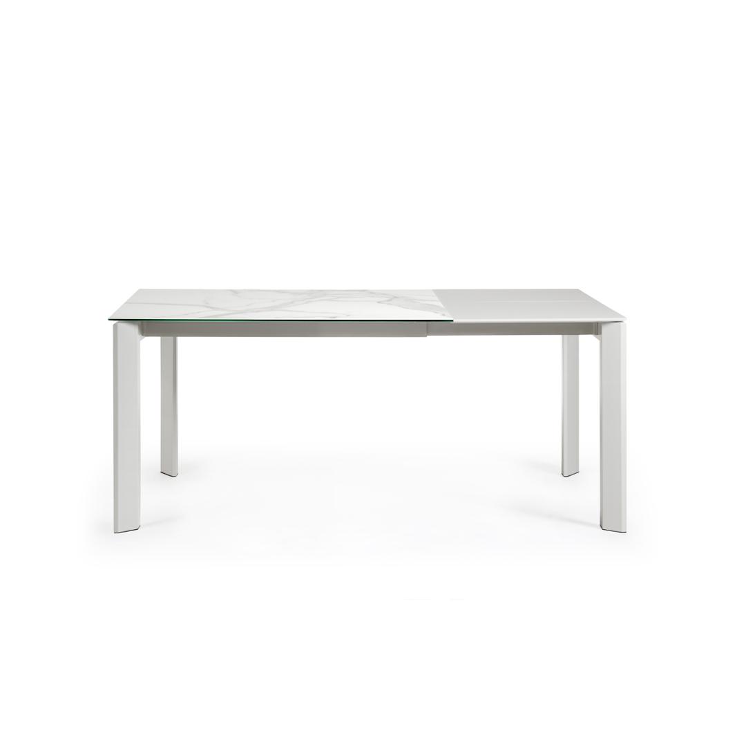 Стол Atta керамический от фабрики La Forma – безупречно спрятанная сложная конструкция в простом минимализме. Стол Atta – это победа инженерной мысли. Так мастерски спрятать выдвижной механизм и замаскировать его под тонкой столешницей смогут только профессионалы. Керамика – точно подобранный материал, который делает изделие эффектным, даже несмотря на принадлежность к минимализму. Стол прямоугольной формы. Столешница толщиной 1 см сделана из ударопрочной керамики графитового или коричневого цвета (для базовых моделей). Данный материал практичный, стойко переносит воздействие высоких температур, легко очищается от загрязнений. Выдвижной механизм находится справа. Чтобы раздвинуть стол, необходимо потянуть за ножки и достать сложенную пополам дополнительную панель (она из МДФ). Раздвижной механизм сделан из нержавеющей стали. Опора выполнена из металла, покрыта серой краской. Благодаря поддержке столешницы по всему периметру, обеспечивается стойкость к высоким весовым нагрузкам, правильное распределение веса. Размеры стола: длина – 120-180 см, 140-200 см или 160-220 см, ширина – 90 см, высота – 76 см.