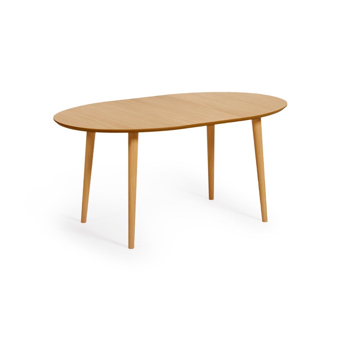 Стол La Forma (ех Julia Grup) Раздвижной стол Oakland из МДФ с дубовым шпоном и ножками из массива каучука Ø120(200)x90 см арт. 114617