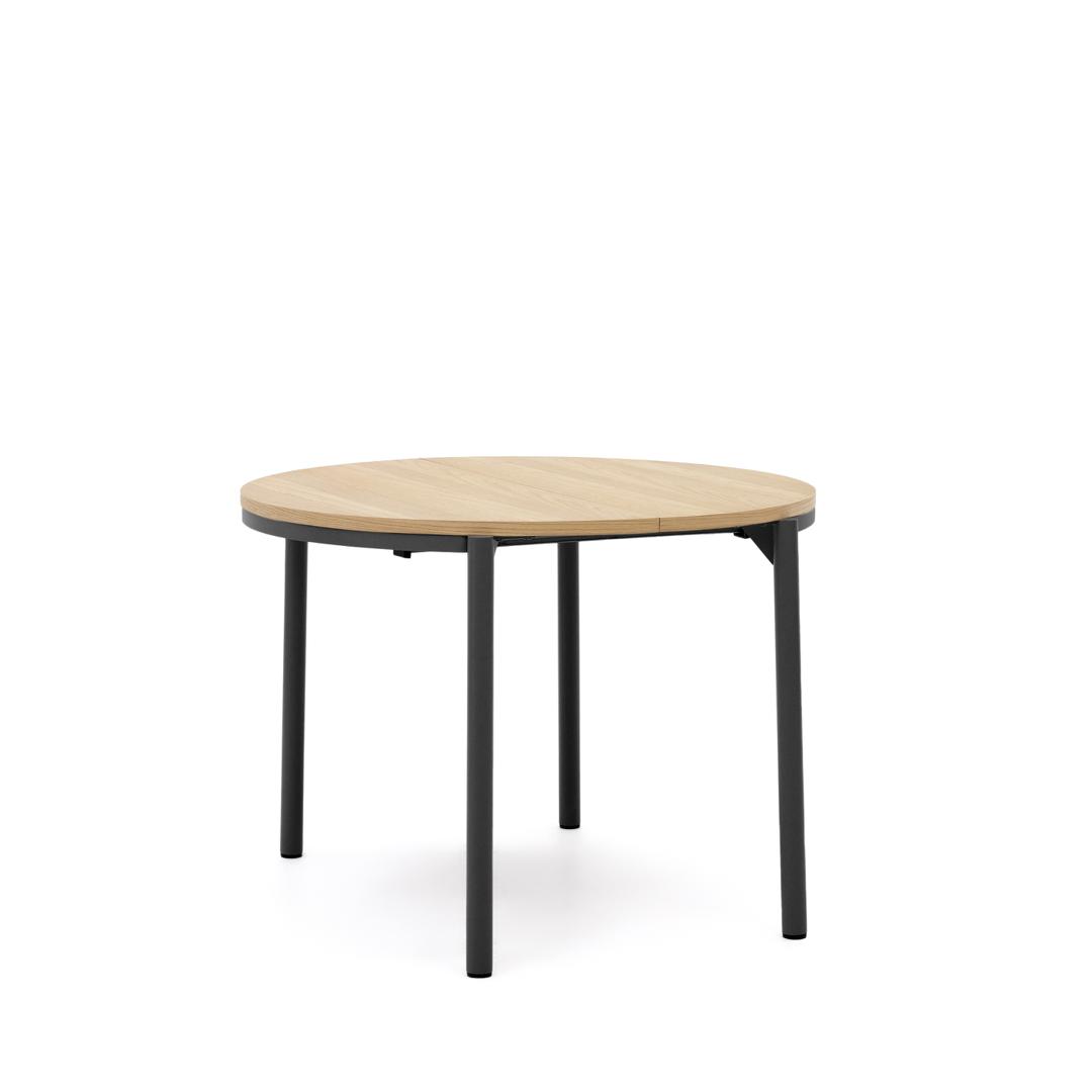 Стол La Forma (ех Julia Grup) Montuiri Круглый раздвижной стол из дубового шпона с ножками черного цвета, Ø90(130) см арт. 192127