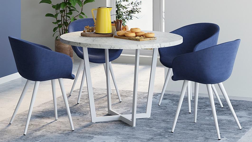 Стол LoftyHome Стол обеденный Мальборк Раунд Мрамор Сноу с белым основанием лофт арт. 1251848