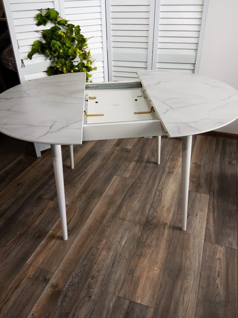 Стол BOLERO в цвете Жемчужный Перито (Белый Мрамор) на белом каркасе