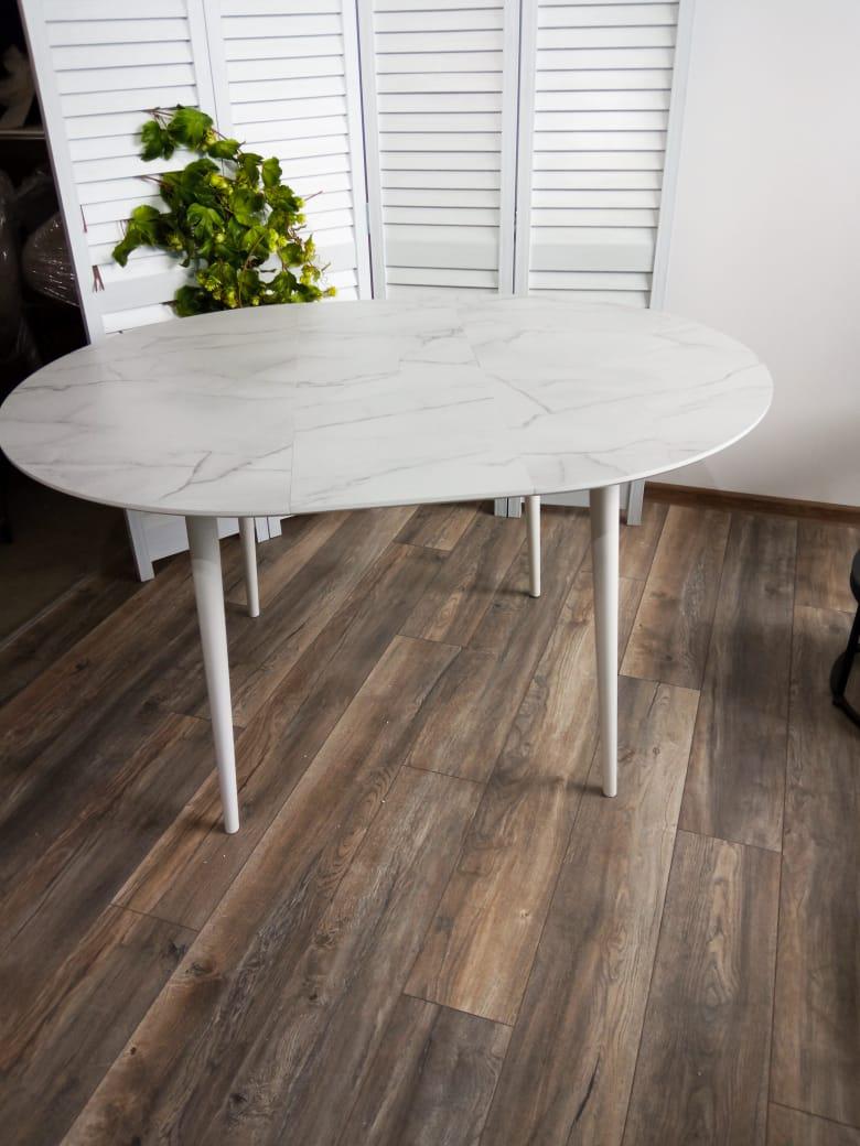 Стол М-СИТИ Стол BOLERO 105 см Жемчужный Перито (Белый Мрамор), HPL / Белый М-City арт. 462M05134