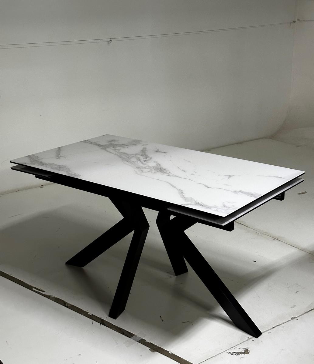 Стол М-СИТИ Стол Кентукки 3 140 БЕЛЫЙ МРАМОР, стекло / ЧЕРНЫЙ, М-City арт. 480M05152