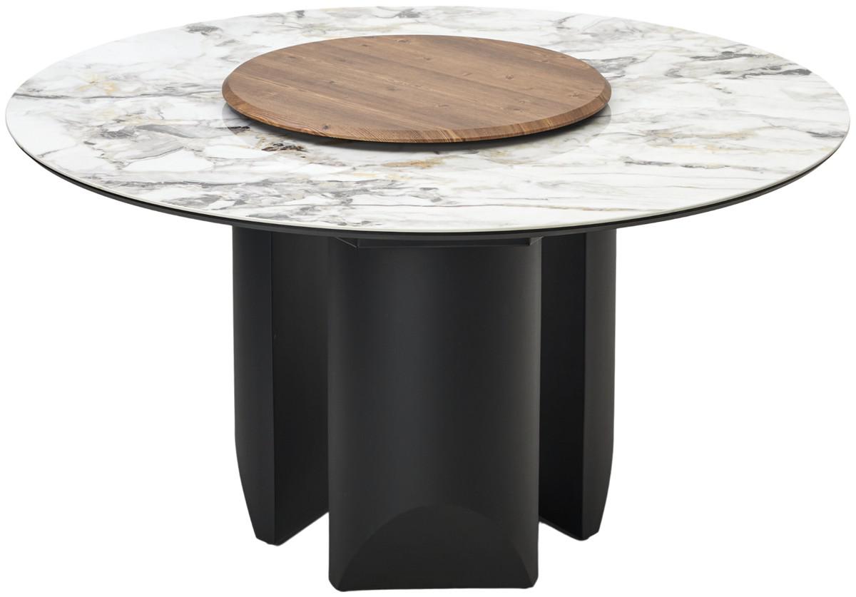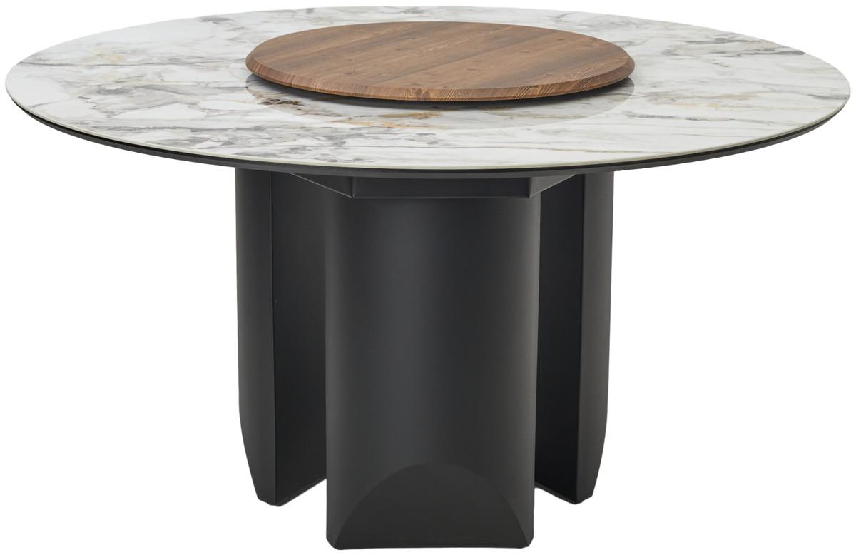 Стол КОЛИЗЕЙ 140 ARCTIC OCEAN круглый нераскладной, цвет белый мрамор, с вращающейся накладкой, цвет орех