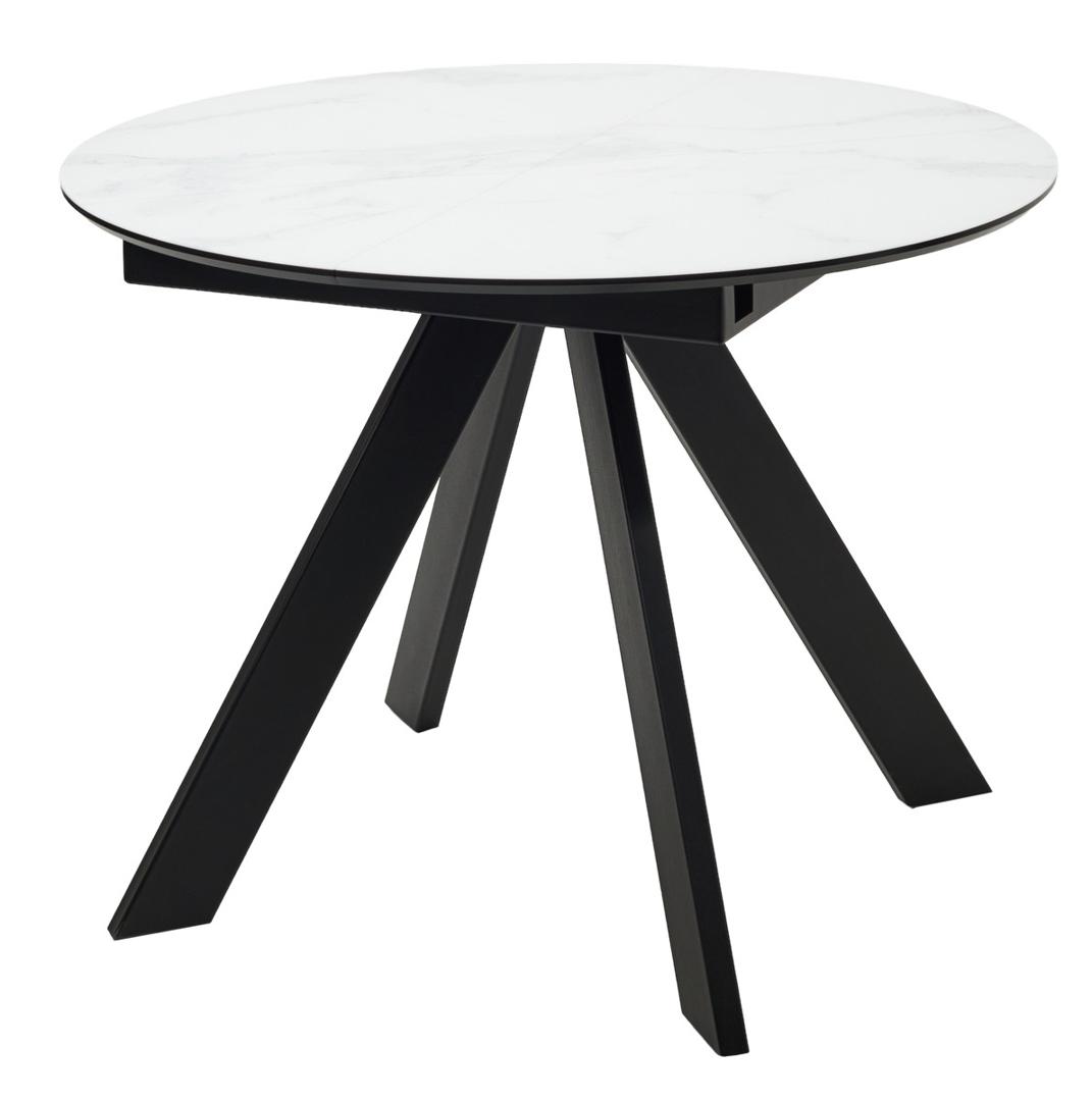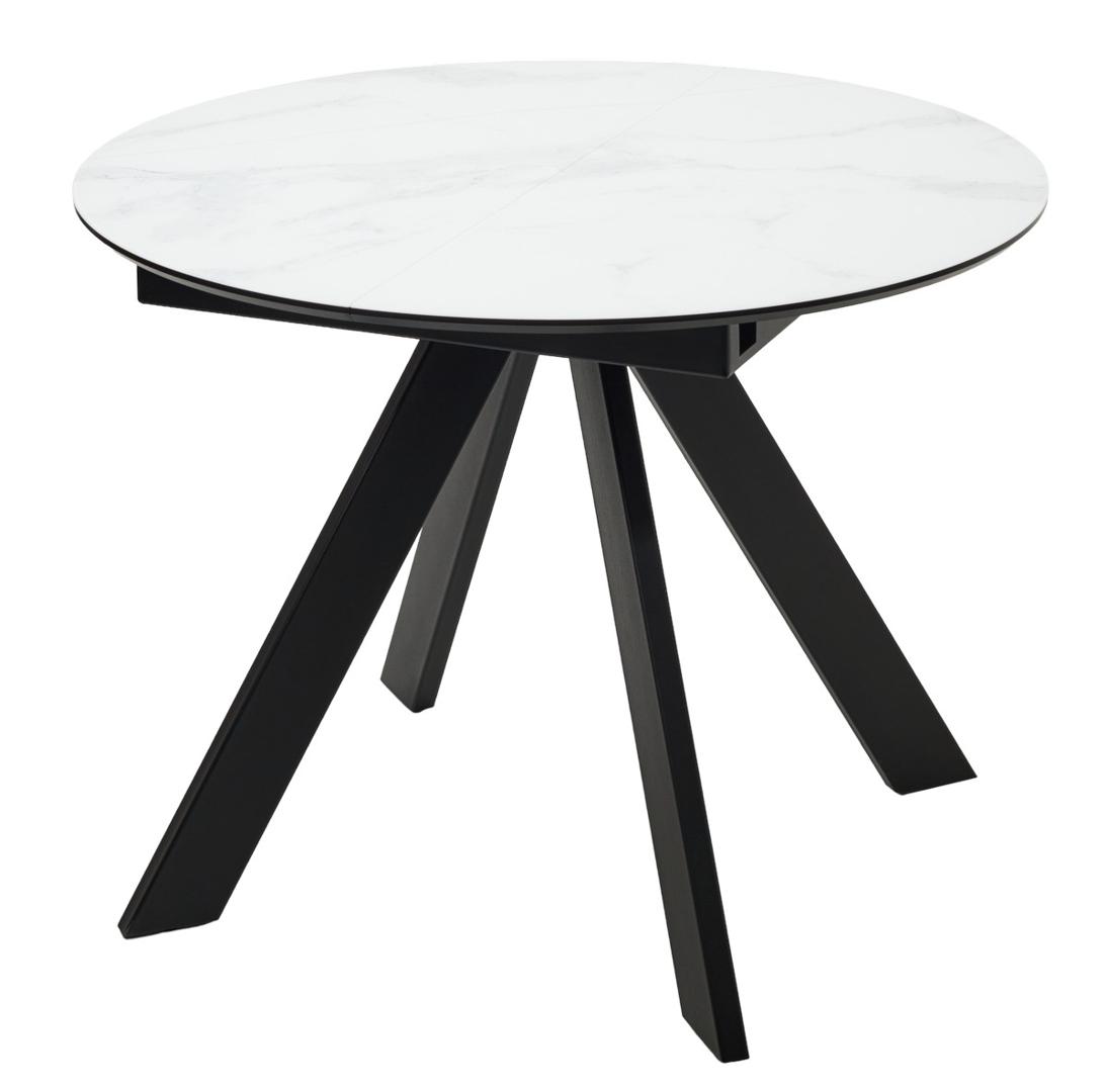 Стол М-СИТИ Стол БОНЖУР 100 БЕЛЫЙ МРАМОР, стекло, черная шагрень / ЧЕРНЫЙ каркас арт. 480M04964