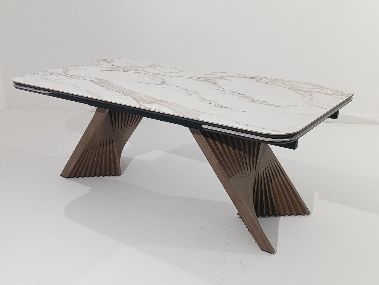 Стол М-СИТИ Стол МАНХЭТТЕН 200 цвет СВЕТЛЫЙ БЕЖ ( DRAC COLD XLIM), керамика / Орех Карни натуральный арт. 480M06203