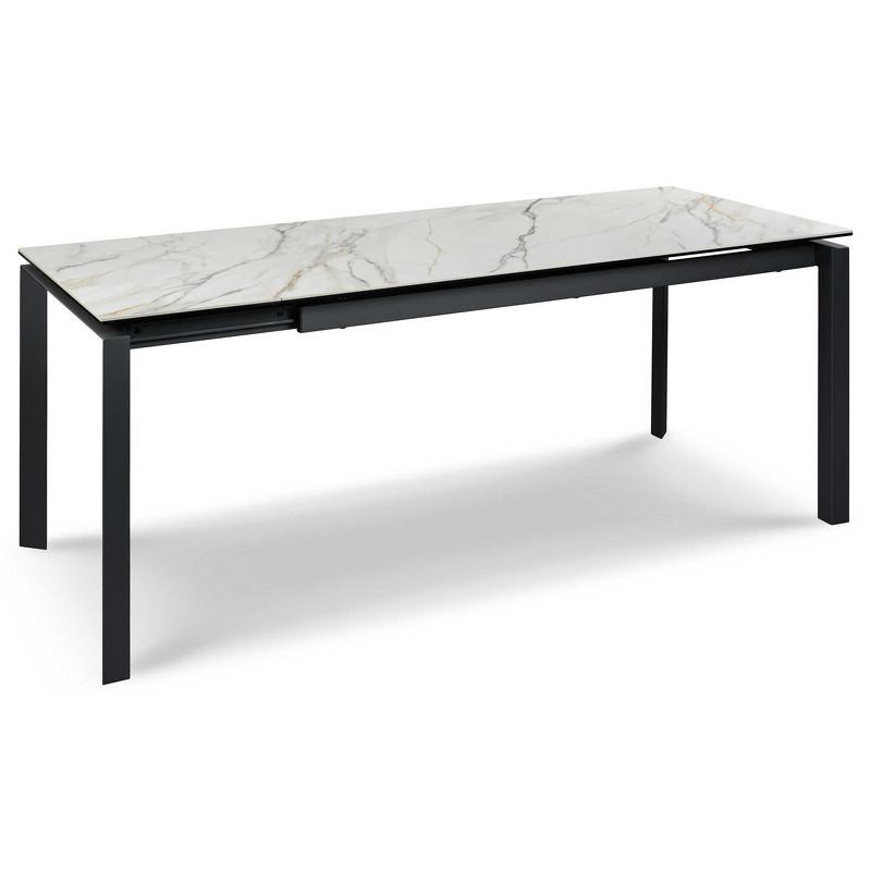 Прямоугольный раскладной обеденный стол от бренда Mod Interiors в ультра актуальном дизайне. Столешница состоит из закаленного стекла (8 мм) нижним слоем и керамики (6 мм) светло-бежевого с прожилками цвета верхним слоем. Подстолье и 4 ноги - прочный металл с максимально стойким к внешним воздействиям порошковым покрытием темно-серого цвета. Стол оснащен боковой вставкой 40 см. Раскрывается стол путем выдвижения с одной стороны и раскладывания вставки, хранящейся внутри стола. Надежный механизм позволяет пользоваться данным столом долгие годы. Гарантия 24 месяца! Стол для комфортного размещения 8-10 человек.