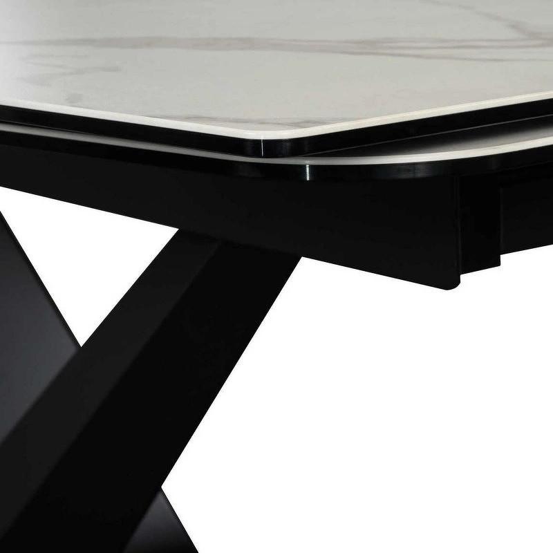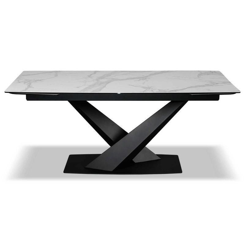 Прямоугольный раскладной обеденный стол от бренда Mod Interiors в ультра актуальном дизайне. Столешница состоит из закаленного стекла (8 мм) нижним слоем и керамики (3 мм) светло-серого с прожилками цвета верхним слоем. Подстолье и ноги - прочный металл с максимально стойким к внешним воздействиям порошковым покрытием черного цвета. Стол оснащен 2-мя боковыми вставками по 40 см. Раскрывается стол путем выдвижения из под стола вставки с каждой стороны стола. Механизм очень легкий и плавный. Надежный механизм позволяет пользоваться данным столом долгие годы. Гарантия 24 месяца! Стол для комфортного размещения 8-12 человек.
