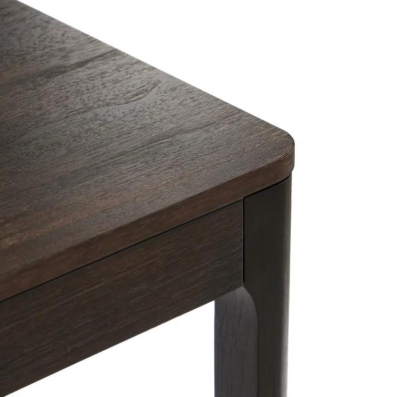 Обеденный стол испанского бренда MOD Interiors. Столешница изготовлена из высококачественного МДФ высокой плотности, ножки из массива дерева. Отделка - натуральный шпон ореха, тонированный в цвет горького шоколада. Стол в современном стиле, подходит для просторной кухни или столовой. Закругленные углы делают стол максимально безопасным, а четыре широкие ножки очень устойчивым. Стол фиксированный, не раскладной. Стол рассчитан на комфортное размещение 6 человек.