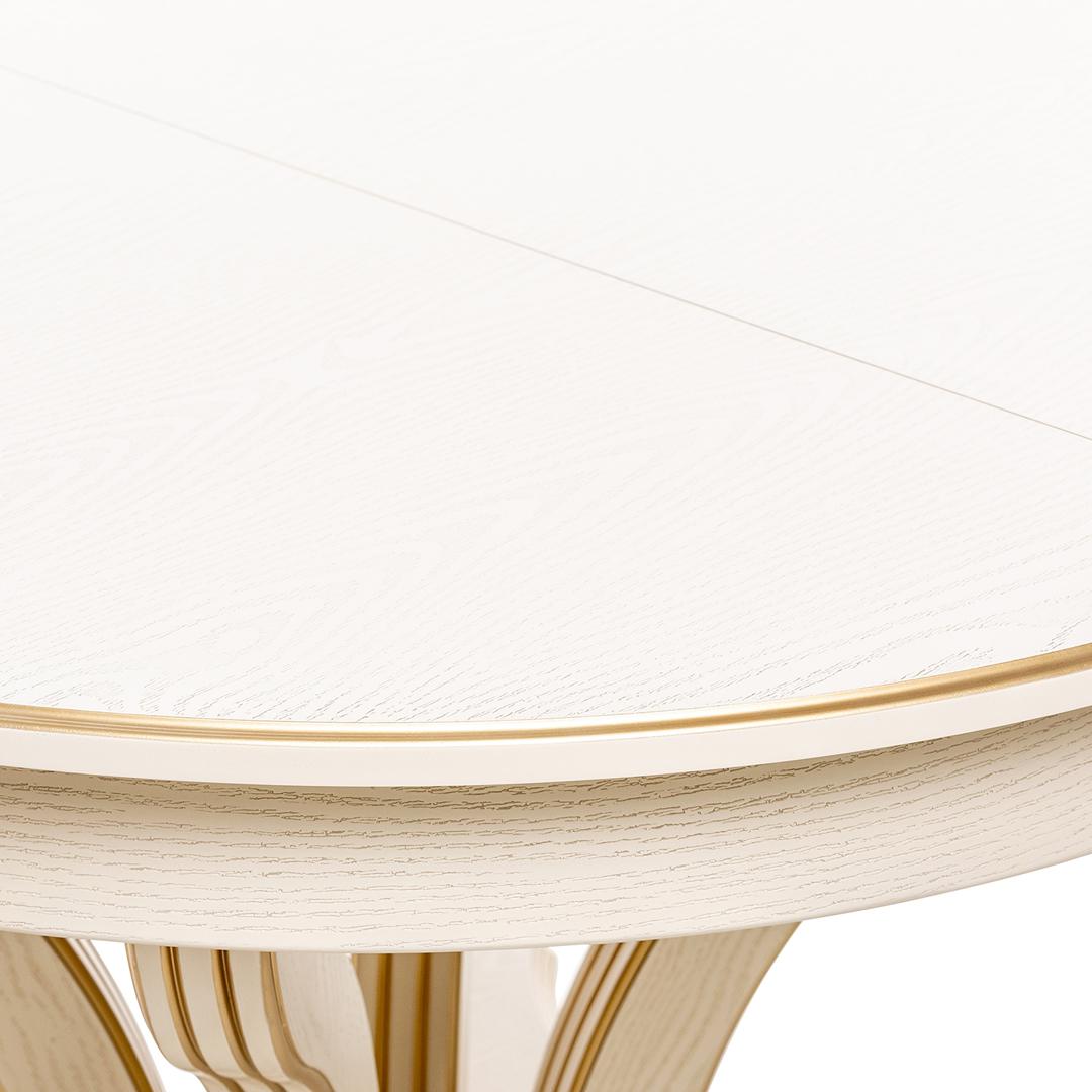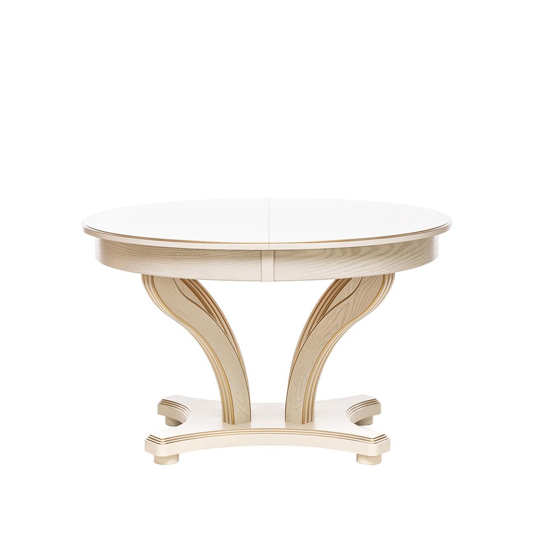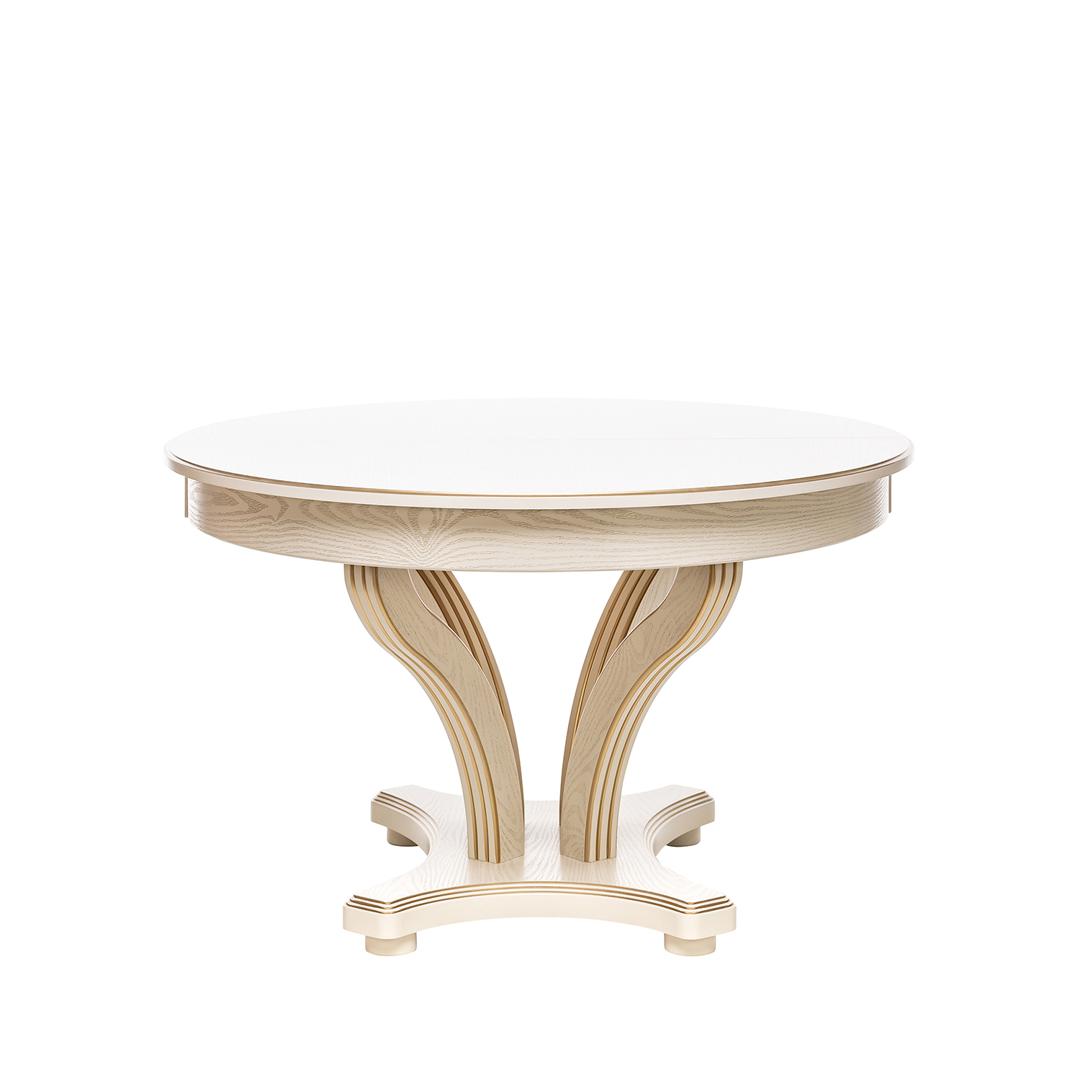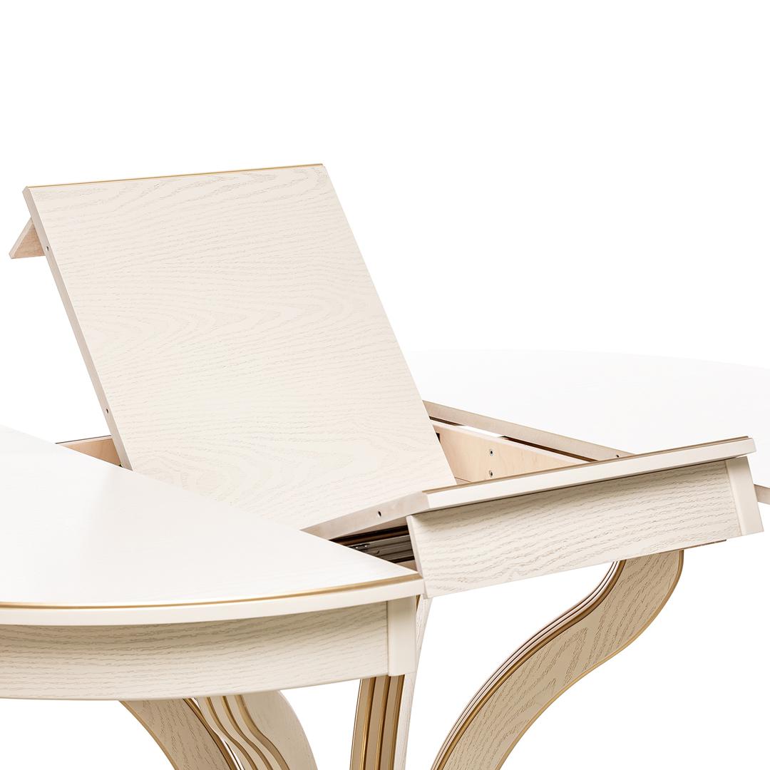 Красивый, компактный и вместительный обеденный стол Ромео – элегантная новинка коллекции обеденных групп Leset. Фигурное основание стола для кухни и опоры из массива бука украшены античной резьбой, круглая столешница столика из шпонированного ЛДСП подчеркивает стильное решение. Стол раздвижной оборудован синхронным механизмом "бабочка", что позволяет разместить 6-8 персон, а в собранном виде экономить пространство. Стол кухонный раздвижной не только станет центральным акцентом кухни или столовой. Изящный и эргономичный стол обеденный круглый идеально впишется в интерьер кафе, ресторана. Габариты стола раскладного 120x120x76 см, в разложенном виде ширина стола 170см. Стол кухонный круглый выдержит 50 кг распределенной нагрузки. Столы обеденные Ромео представлены в 3-х решениях. Найдется подходящий к вашему дизайну стол: круглый белый, слоновая кость или темный орех. Выбирайте столы и стулья для кухни российского производителя! Безупречное сочетание – круглый стол со стульями Юта Leset.