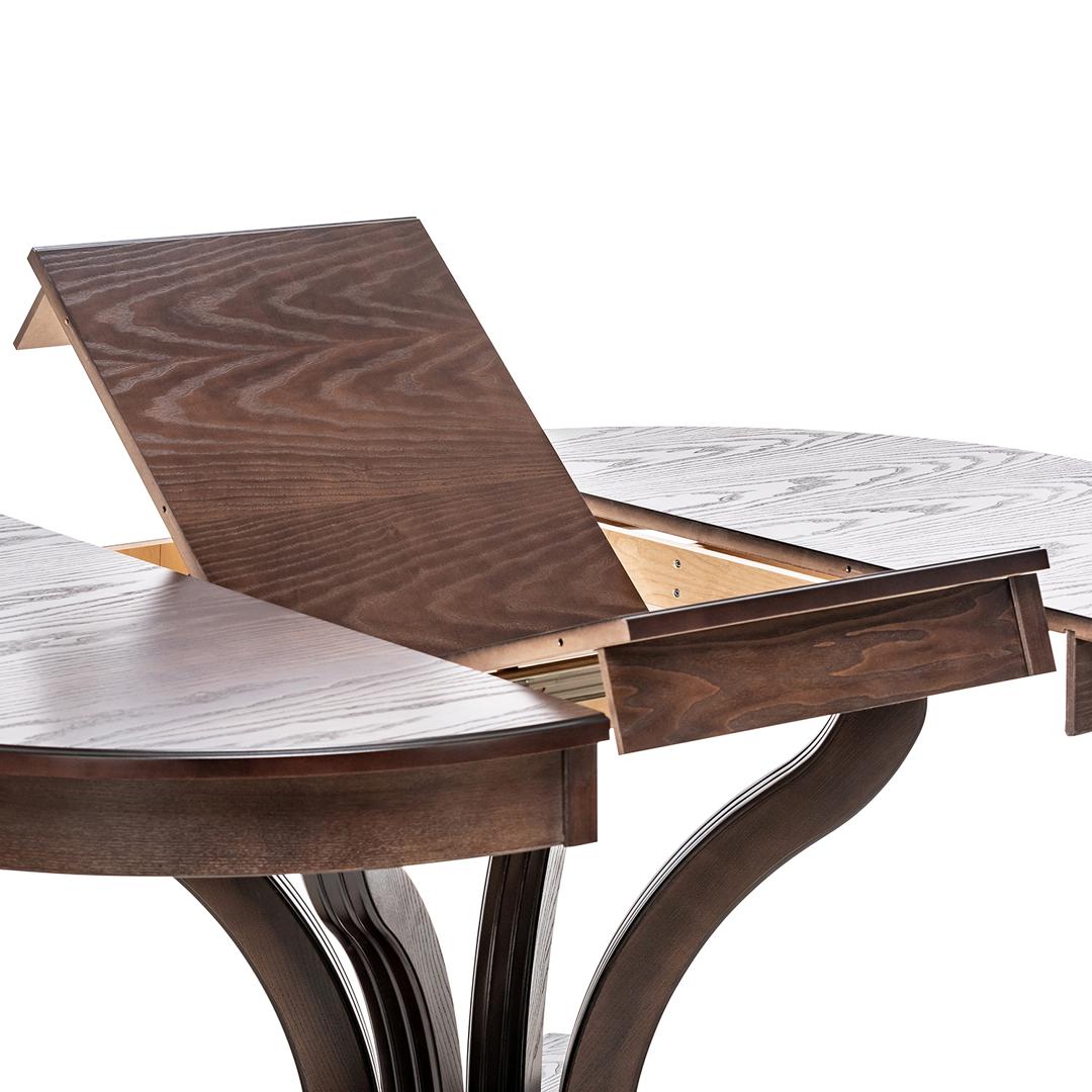 Красивый, компактный и вместительный обеденный стол Ромео – элегантная новинка коллекции обеденных групп Leset. Фигурное основание стола для кухни и опоры из массива бука украшены античной резьбой, круглая столешница столика из шпонированного ЛДСП подчеркивает стильное решение. Стол раздвижной оборудован синхронным механизмом "бабочка", что позволяет разместить 6-8 персон, а в собранном виде экономить пространство. Стол кухонный раздвижной не только станет центральным акцентом кухни или столовой. Изящный и эргономичный стол обеденный круглый идеально впишется в интерьер кафе, ресторана. Габариты стола раскладного 120x120x76 см, в разложенном виде ширина стола 170см. Стол кухонный круглый выдержит 50 кг распределенной нагрузки. Столы обеденные Ромео представлены в 3-х решениях. Найдется подходящий к вашему дизайну стол: круглый белый, слоновая кость или темный орех. Выбирайте столы и стулья для кухни российского производителя! Безупречное сочетание – круглый стол со стульями Юта Leset.