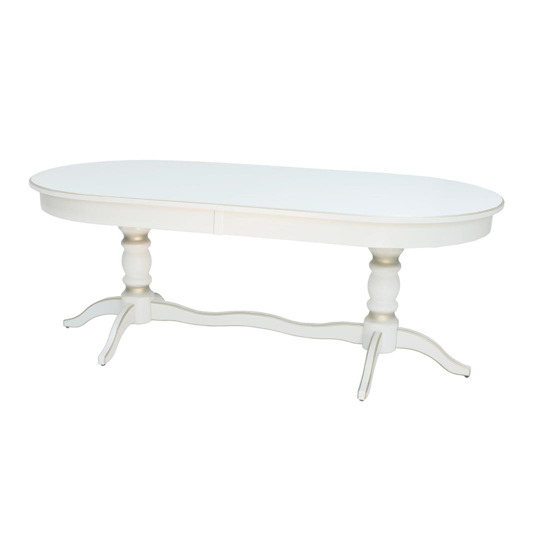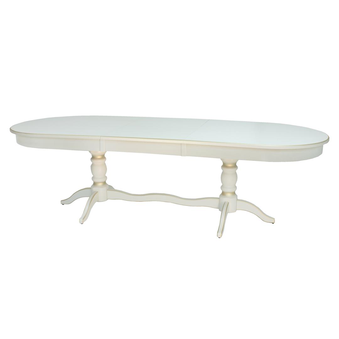 Обеденный стол Вашингтон, воплощенный в элегантном классическом стиле, идеально подойдет для просторной кухни. Овальная столешница толщиной 23 мм изготовлена из МДФ и облицована шпоном ясеня, основание выполнено из массива бука. Использование резного декора с эффектной патиной, защищающей дерево от разрушения, изящные гнутые ножки придают модели благородный вид. В разложенном виде, длина стола - 2600 мм.
