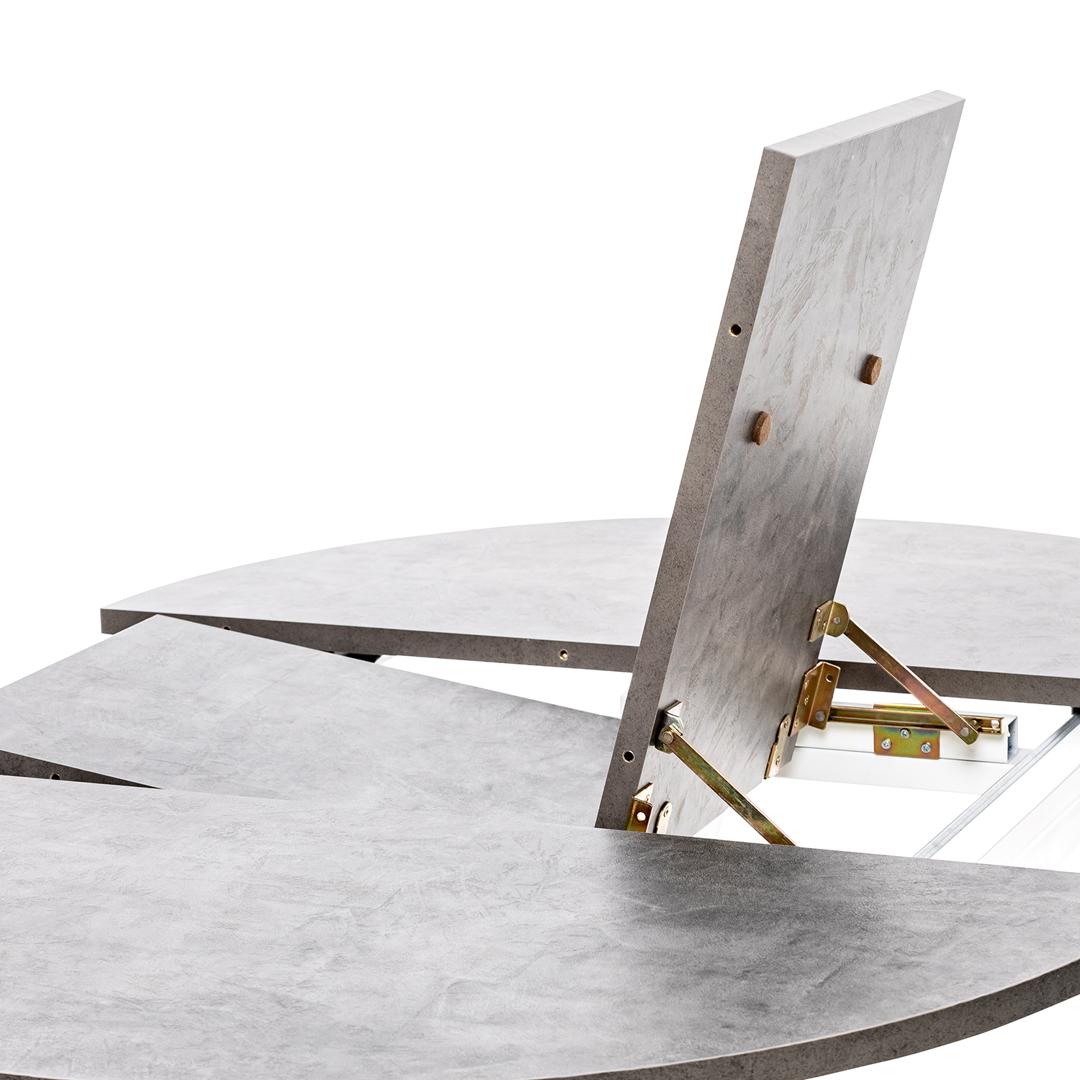 Кухня – символ домашнего очага и теплых семейных отношений. Круглый обеденный раскладной стол Leset Капри позволит создать невидимый и тесный контакт между присутствующими за трапезой. Это идеальное решение для кухни небольшой площади. За счет хранящейся в подстолье вставке столешница из качественного ЛДСП легко раздвигается, увеличивая вместительность до 6 человек. Устойчивость в разложенном виде достигается за счет правильных пропорций перекрещенных металлических опор. Прочная столешница, толщиной 22 мм, не боится влаги, горячей посуды, бытовой химии (кроме абразивов) и выдерживает вес до 40 кг. Круглый обеденный стол на перекрещенных ножках смотрится изящно, лаконично и ненавязчиво в любом интерьере. Он словно застыл в энергичном танце! Дополнительная вставка в цвет столешницы продолжает элегантный образ изделия, делая его целостным и завершенным.