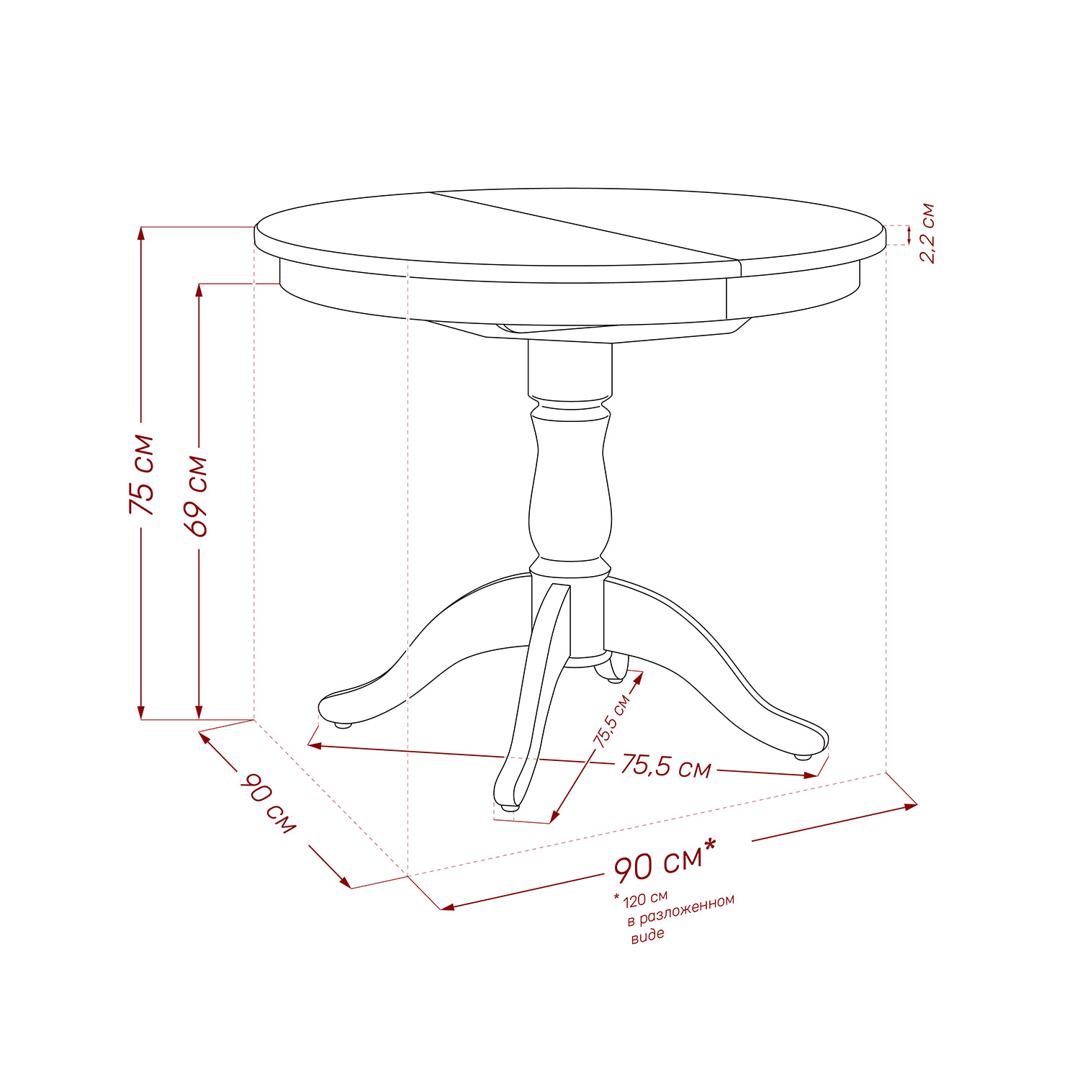 Размер столешницы в разложенном виде - 900x1200 мм.