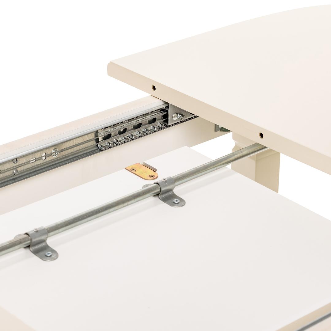 Стол Аризона выполнен в традиционном стиле. Утонченный дизайн делает его конструкцию легкой и элегантной. Столешница выполнена из материала МДФ и покрытая эмалью и матовым лаком. Центральная вставка - бабочка хранится внутри стола. В разложенном виде, длина стола - 1500 мм.