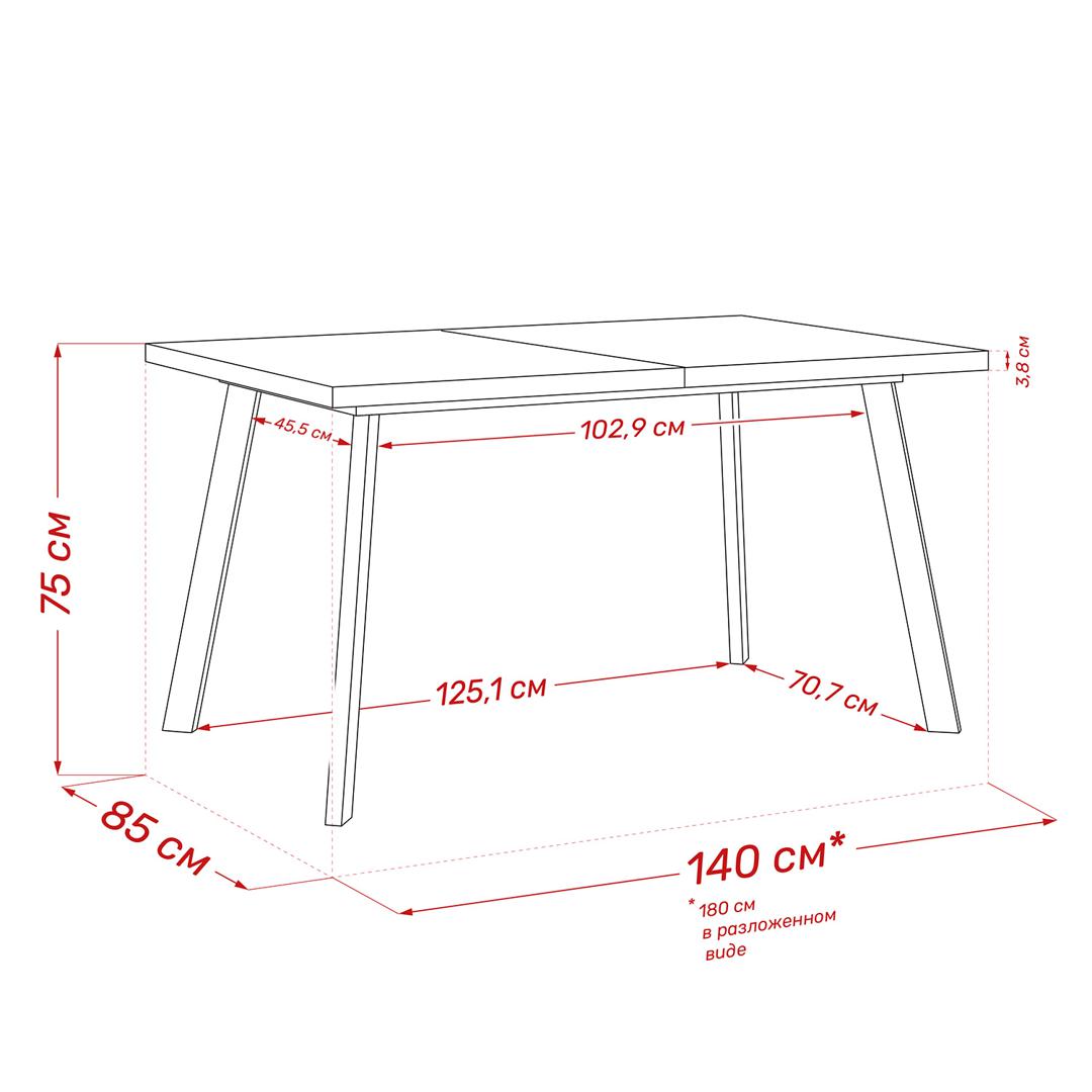 Размер столешницы в разложенном виде - 850x1800 мм.