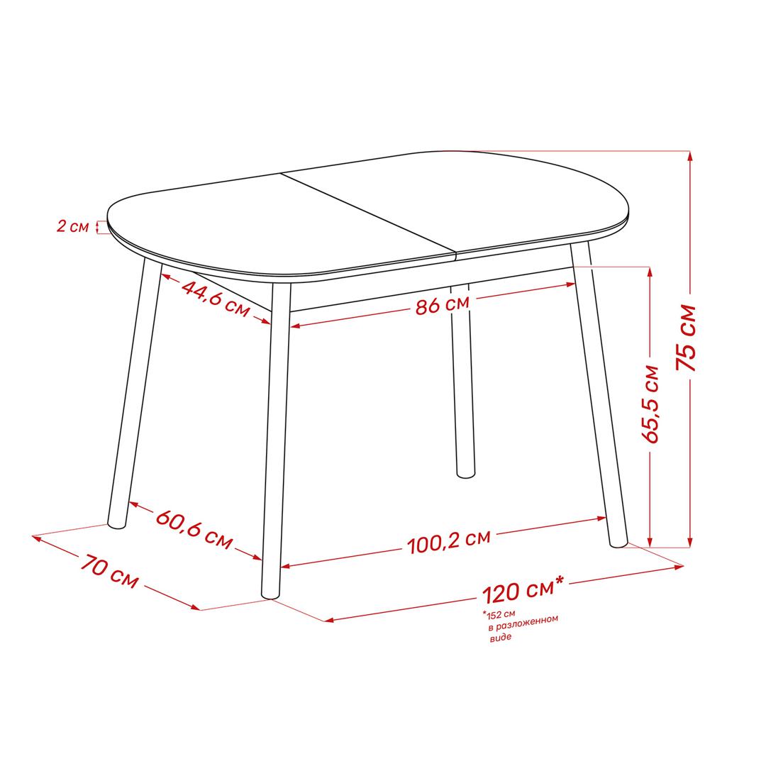 Размер столешницы в разложенном виде - 700x1520 мм.