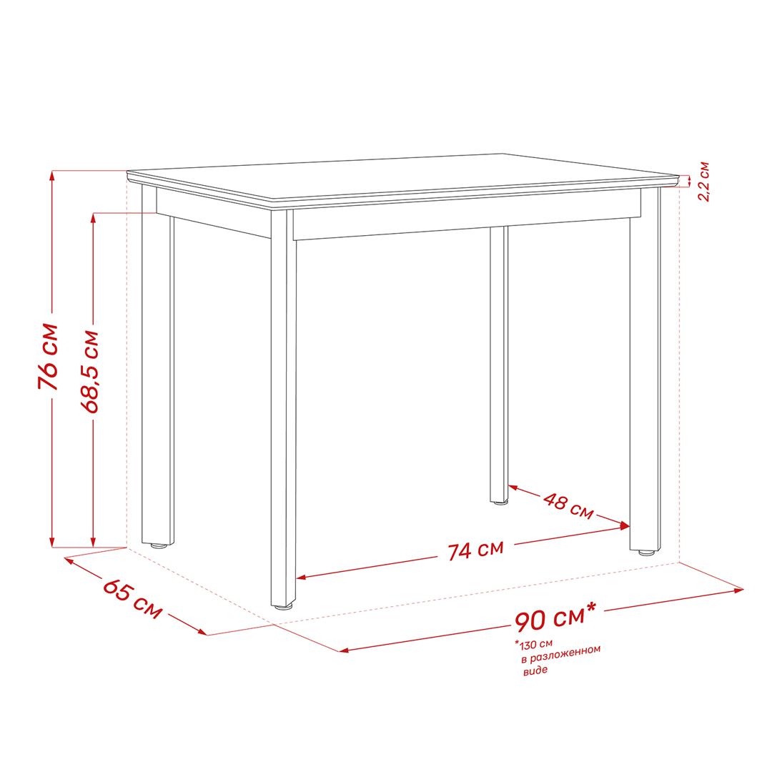 Размер столешницы в разложенном виде - 650x1300 мм.