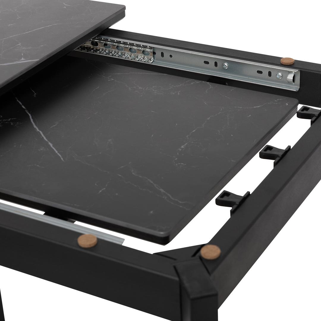 Идеальный выбор для современной столовой — раздвижной обеденный стол Leset Айлин 1Р. Элегантный дизайн сочетается с функциональностью, что делает его центром притяжения в любом интерьере. Прочные стальные опоры с сечением 60x30 мм обеспечивают надежность и устойчивость, а керамическая столешница на подложке из МДФ устойчива к высоким температурам до 120?. Механизм трансформации типа "слайдер" позволяет легко изменить размер столешницы, подстраивая её под ваши нужды. Регулируемые ножки обеспечивают идеальную устойчивость на любой поверхности. Этот стол станет отличным решением как для уютных семейных ужинов, так и для приема гостей.