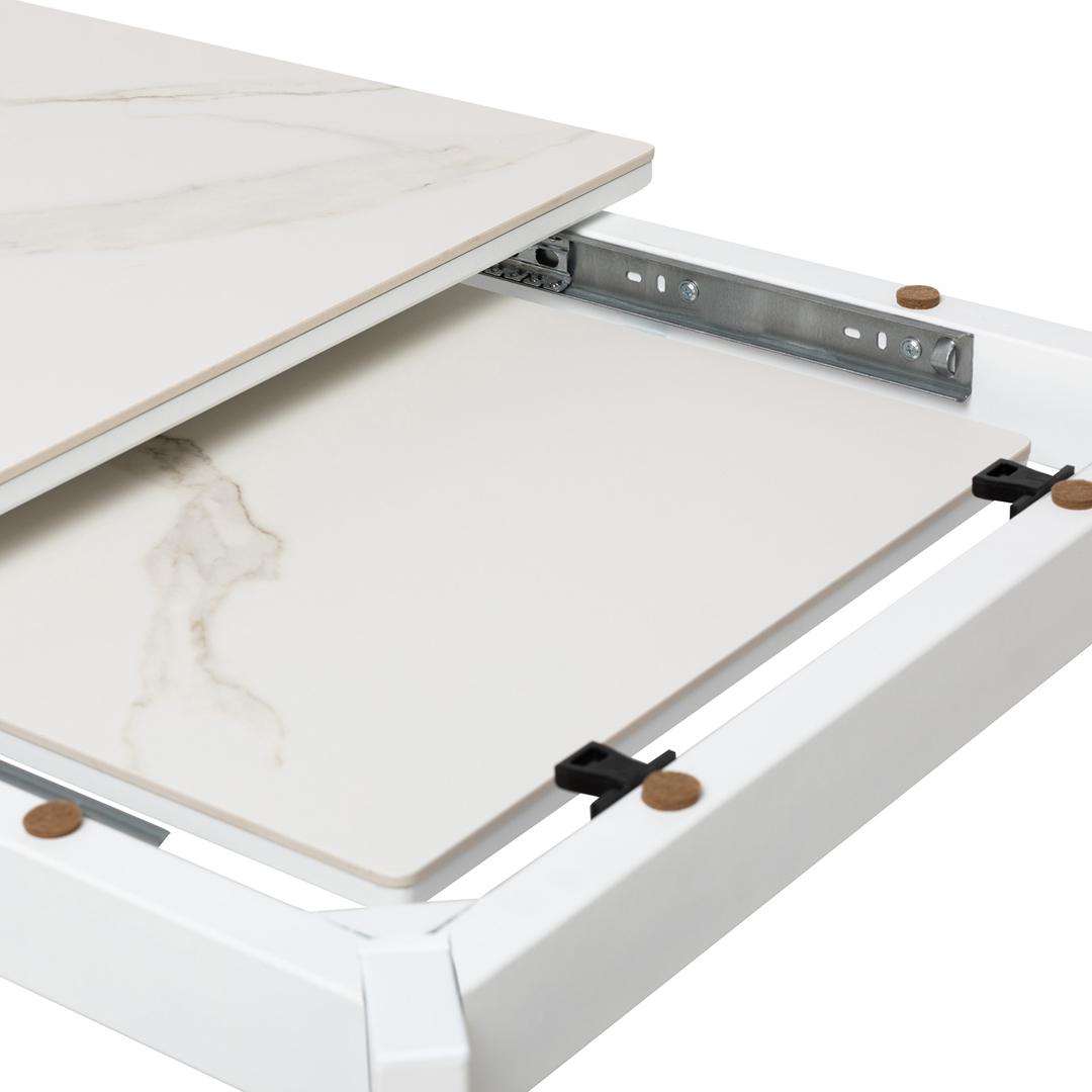Идеальный выбор для современной столовой — раздвижной обеденный стол Leset Айлин 2Р. Элегантный дизайн сочетается с функциональностью, что делает его центром притяжения в любом интерьере. Прочные стальные опоры с сечением 60x30 мм обеспечивают надежность и устойчивость, а керамическая столешница на подложке из МДФ устойчива к высоким температурам до 120?. Механизм трансформации типа "слайдер" позволяет легко изменить размер столешницы, подстраивая её под ваши нужды. Регулируемые ножки обеспечивают идеальную устойчивость на любой поверхности. Этот стол станет отличным решением как для уютных семейных ужинов, так и для приема гостей.
