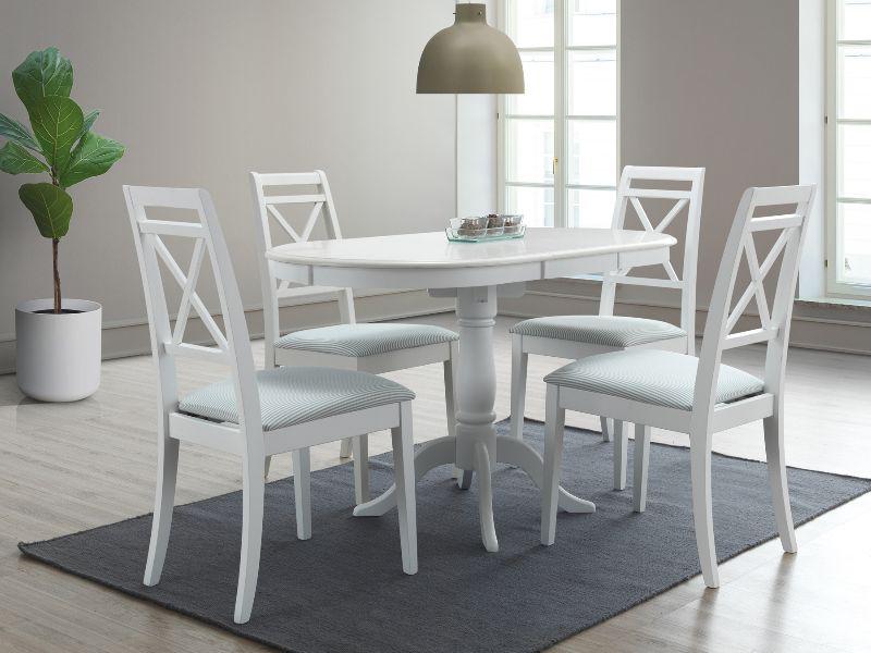 Вес, кг: 27 / Высота (см): 75 / Гарантия, мес.: 12 / Глубина (см): 70 / Количество коробок: 2 / Материал каркаса: дерево / Материал столешницы: МДФ / Необходимость сборки: да / Раздвижной: да / Размер упаковки 1: 1,07/0,76/0,11 / Размер упаковки 2: 0,53/0,13/0,13 / Страна производитель: Малайзия / Форма столешницы: овал / Цвет каркаса: белый / Цвет столешницы: белый / Ширина (см): 100-129