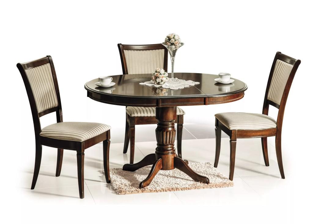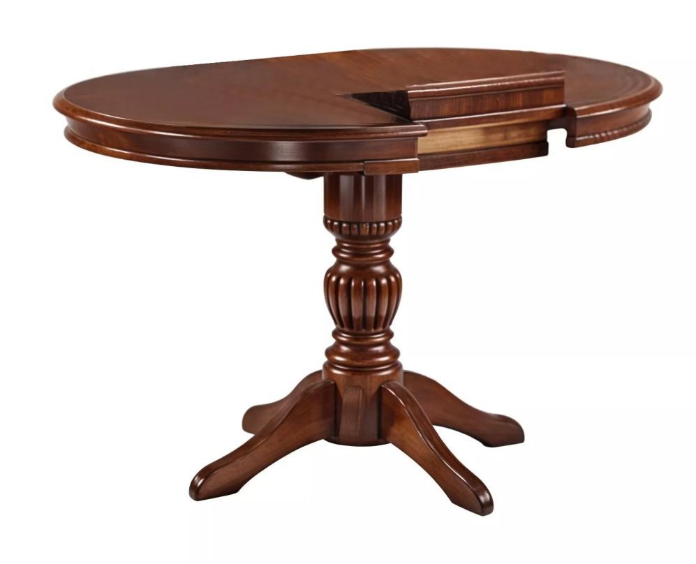Вес, кг: 28,4 / Высота (см): 75 / Гарантия, мес.: 12 / Глубина (см): 90 / Количество коробок: 2 / Материал каркаса: дерево / Материал столешницы: МДФ / Необходимость сборки: да / Раздвижной: да / Размер упаковки 1: 0,95/0,98/0,16 / Размер упаковки 2: 0,18/0,54/0,18 / Страна производитель: Малайзия / Форма столешницы: круг / Цвет каркаса: орех / Цвет столешницы: темно-коричневый / Ширина (см): 90-125