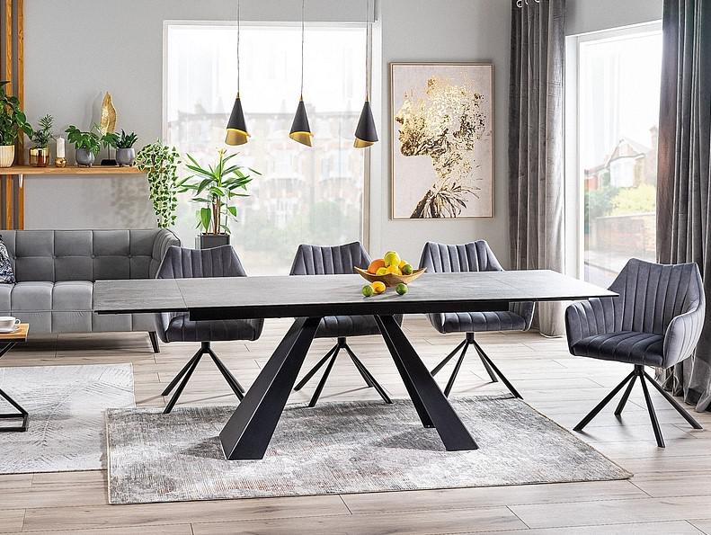 Стол Signal Стол обеденный Signal SALVADORE CERAMIC 160 раскладной (серый мрамор/черный мат) арт. SALVADORESZC