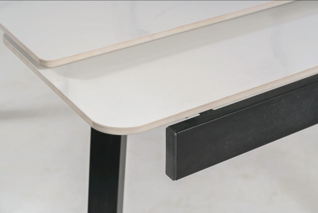 Вес, кг: 64,8 / Высота (см): 76 / Гарантия, мес.: 12 / Глубина (см): 85 / Количество коробок: 2 / Материал каркаса: металл / Материал столешницы: керамика / Необходимость сборки: да / Раздвижной: да / Размер упаковки 1: 1,05/1,355/0,2 / Размер упаковки 2: 0,35/0,7/0,105 / Страна производитель: Китай / Форма столешницы: прямоугольник / Цвет каркаса: черный / Цвет столешницы: белый / Ширина (см): 120