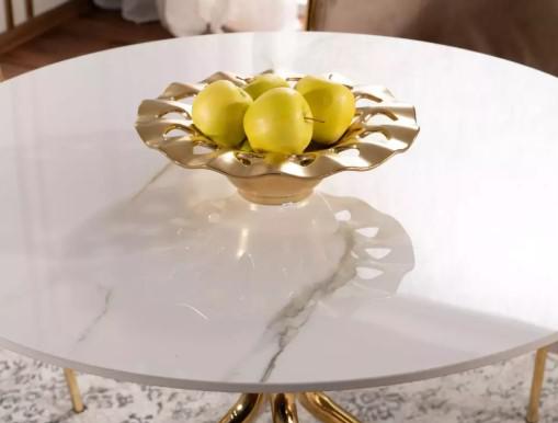 Вес, кг: 22,3 / Высота (см): 75 / Гарантия, мес.: 12 / Глубина (см): 90 / Количество коробок: 2 / Материал каркаса: металл / Материал столешницы: керамика / Необходимость сборки: да / Раздвижной: нет / Размер упаковки 1: 0,95/0,93/0,05 / Размер упаковки 2: 0,91/0,73/0,08 / Страна производитель: Китай / Форма столешницы: круг / Цвет каркаса: золото / Цвет столешницы: белый / Ширина (см): 90