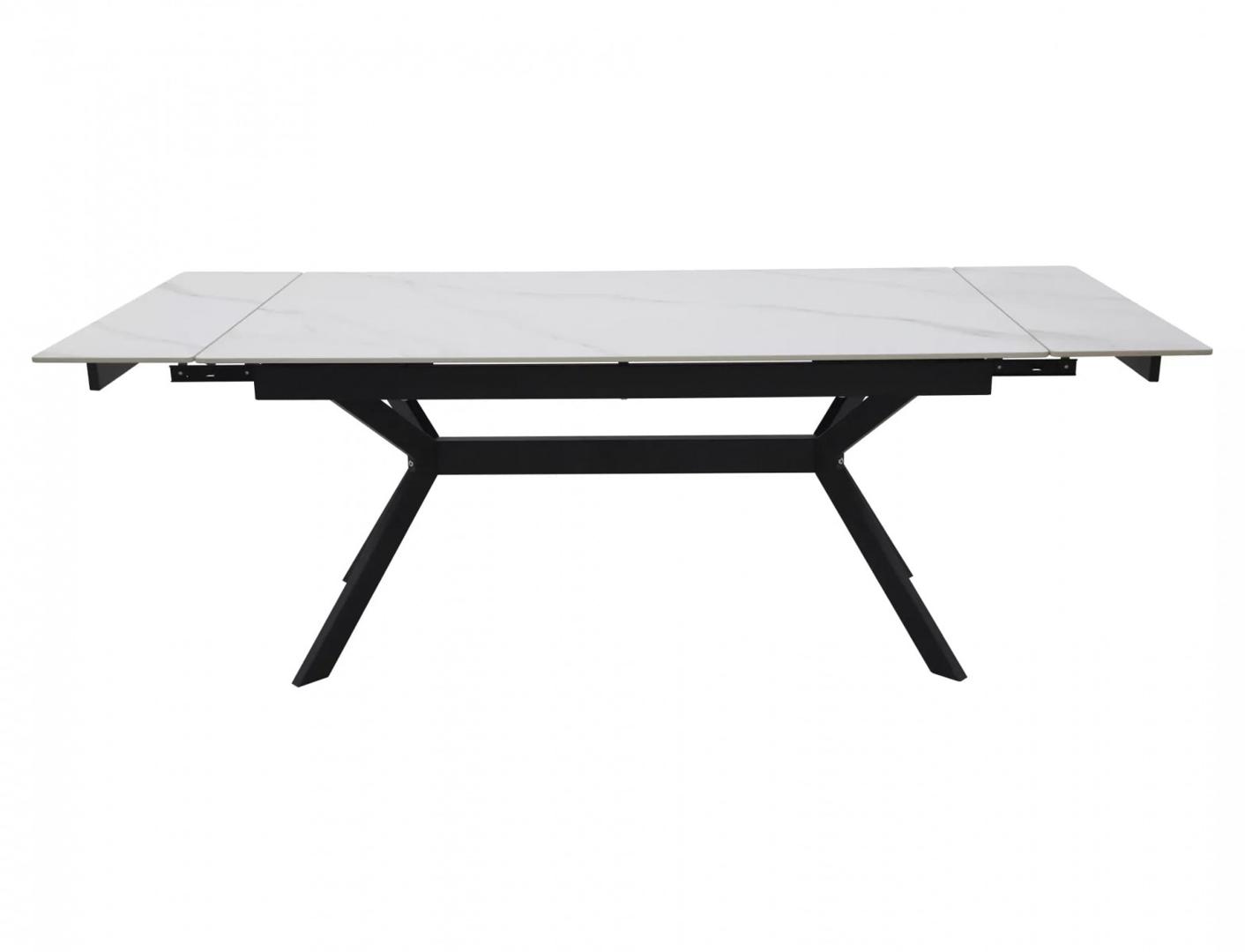 Вес, кг: 90 / Высота (см): 75 / Гарантия, мес.: 12 / Глубина (см): 90 / Количество коробок: 2 / Материал каркаса: металл / Материал столешницы: керамика / Необходимость сборки: да / Раздвижной: да / Размер упаковки 1: 1,06/1,75/0,2 / Размер упаковки 2: 0,56/0,69/0,23 / Страна производитель: Китай / Форма столешницы: прямоугольник / Цвет каркаса: черный / Цвет столешницы: белый / Ширина (см): 160 / Ширина в разложенном виде (см): 220