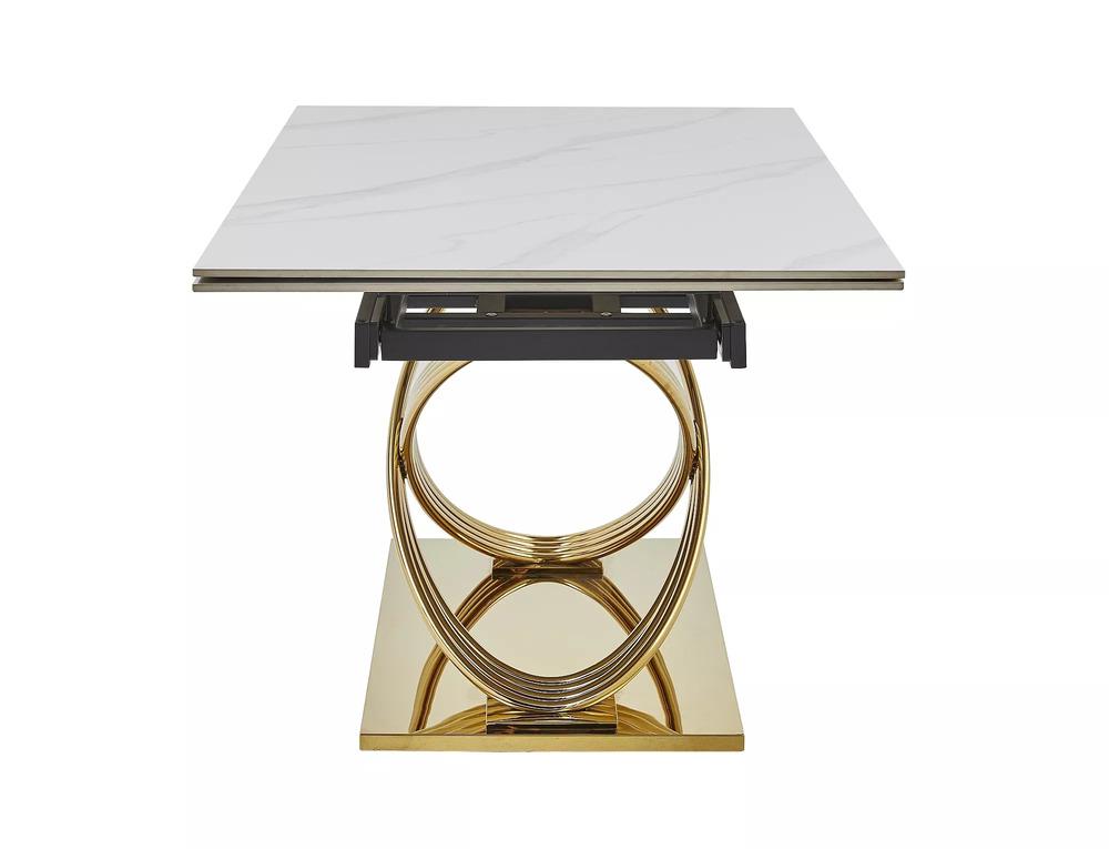 Вес, кг: 137 / Высота (см): 75 / Гарантия, мес.: 12 / Глубина (см): 90 / Количество коробок: 3 / Материал каркаса: металл / Материал столешницы: керамика / Необходимость сборки: да / Раздвижной: да / Размер упаковки 1: 0,96/1,66/0,175 / Размер упаковки 2: 0,55/1/0,66 / Размер упаковки 3: 1,02/0,61/0,07 / Страна производитель: Китай / Форма столешницы: прямоугольник / Цвет каркаса: золото / Цвет столешницы: белый / Ширина (см): 160-240