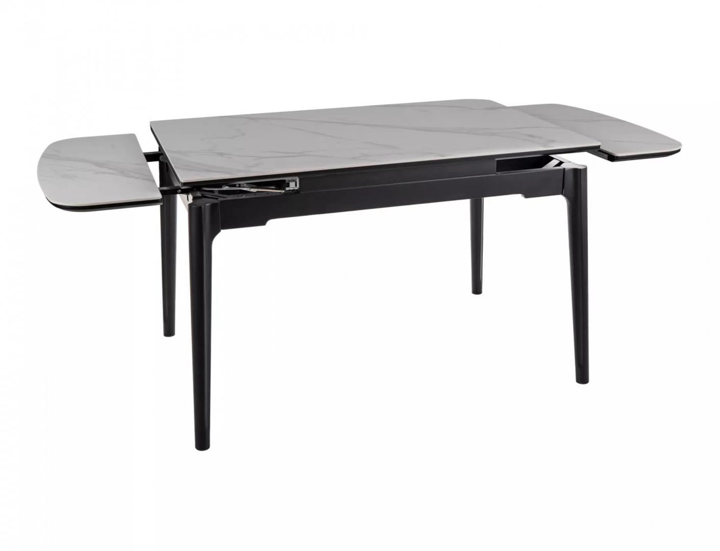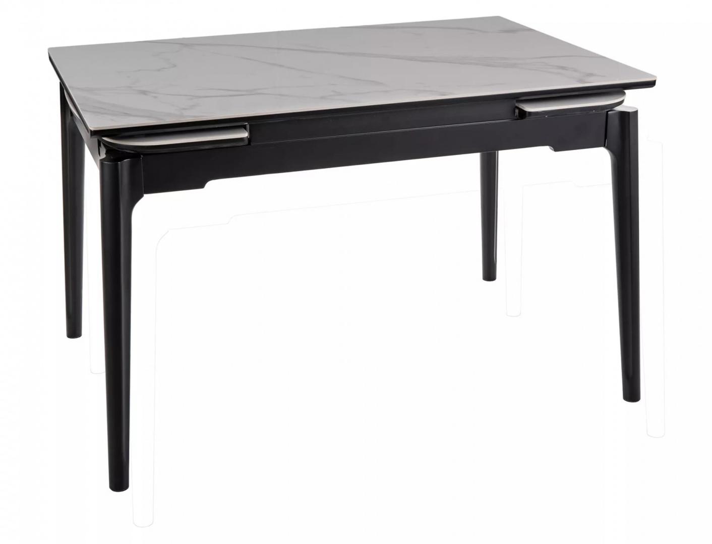 Вес, кг: 60 / Высота (см): 75 / Гарантия, мес.: 12 / Глубина (см): 80 / Количество коробок: 1 / Материал каркаса: дерево / Материал столешницы: керамика / Необходимость сборки: да / Раздвижной: да / Размер упаковки 1: 0,92/1,42/0,21 / Страна производитель: Китай / Форма столешницы: прямоугольник / Цвет каркаса: черный / Цвет столешницы: белый / Ширина (см): 120-180