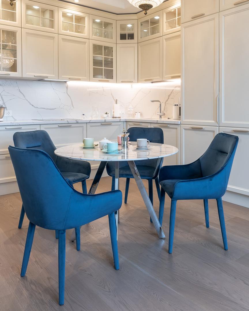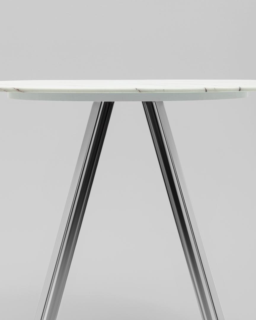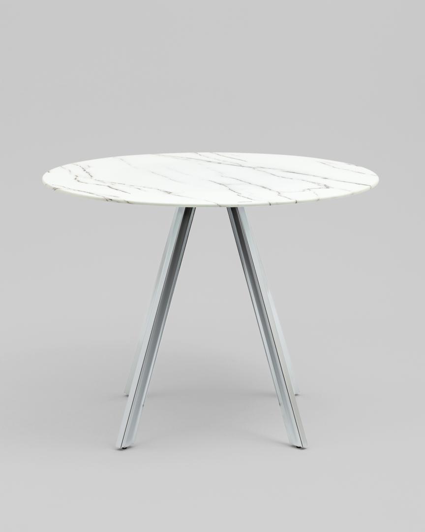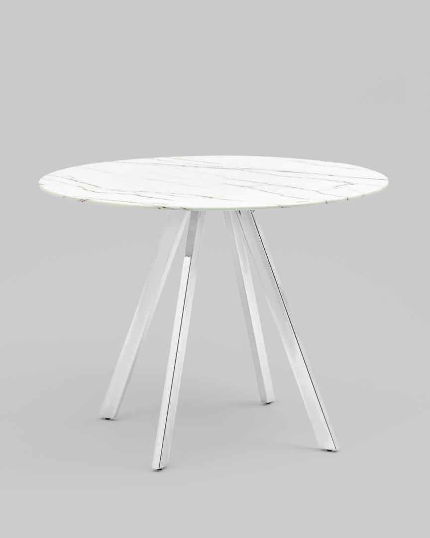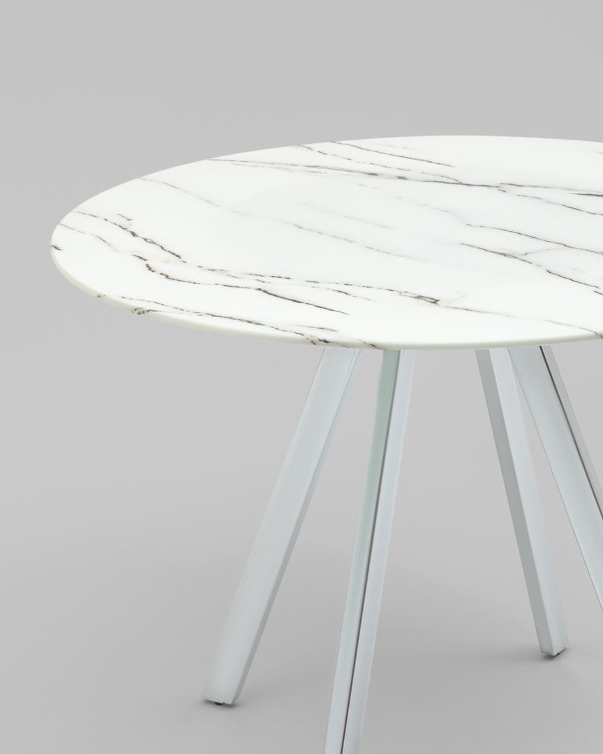Стол обеденный Хьюстон круглый, стеклянный столешница белая с рисунком под мрамор