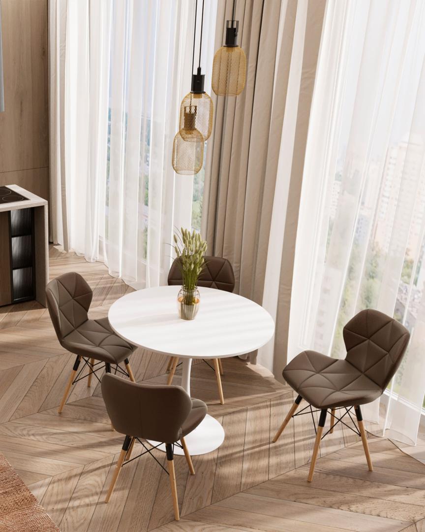 Стол Tulip D90 белый столешница МДФ ножка металл