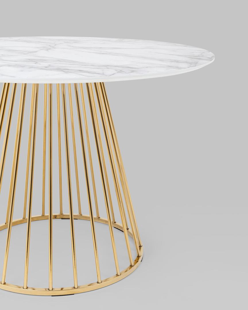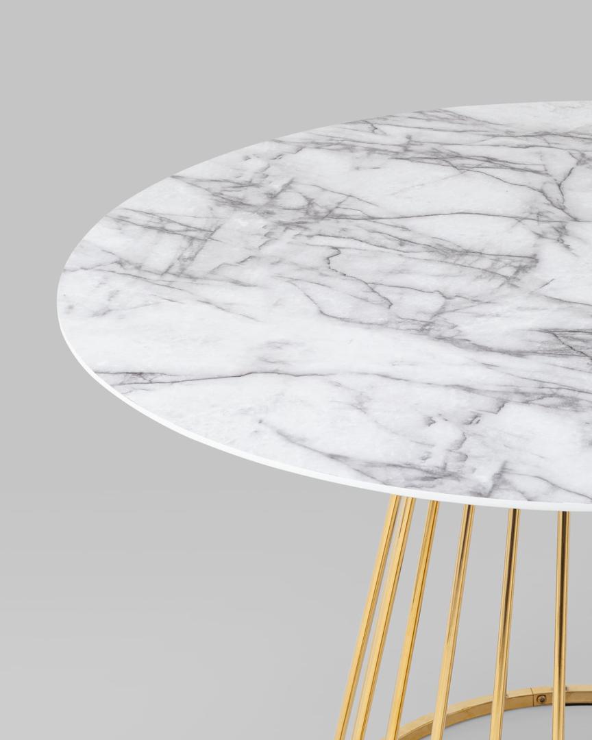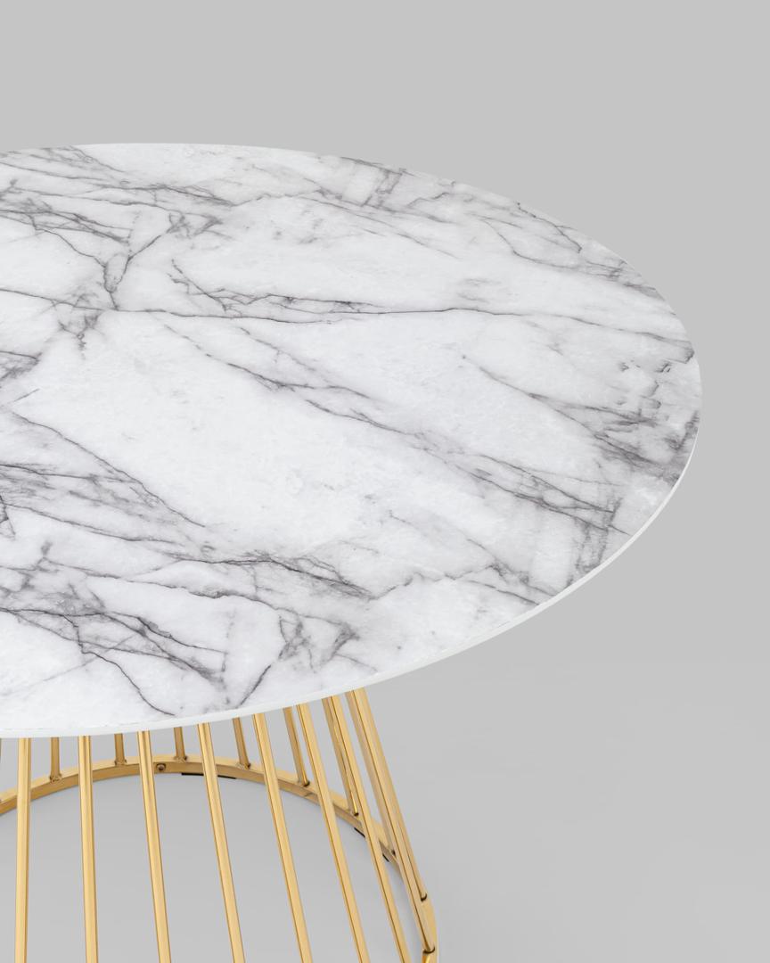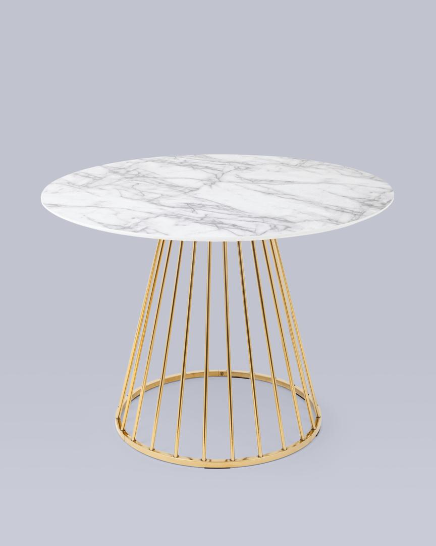 Стол обеденный Ливерпуль 110*110 столешница белый мрамор с золотым основанием