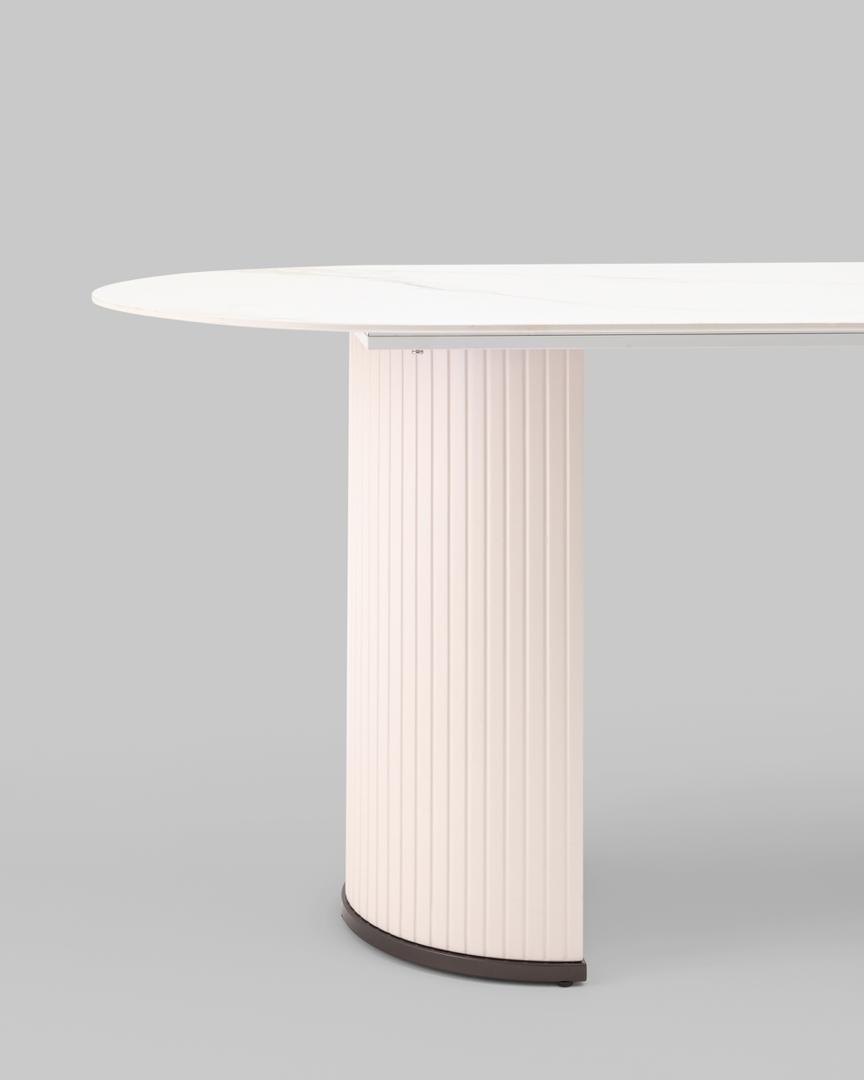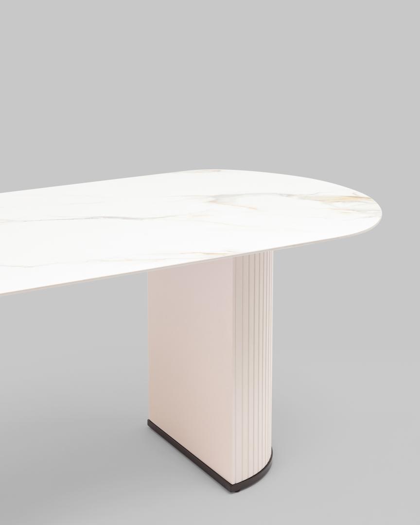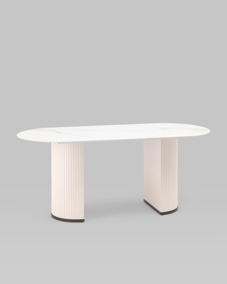 Стол обеденный Opera 180х90 столешница белый мрамор керамика ножки плиссе металл